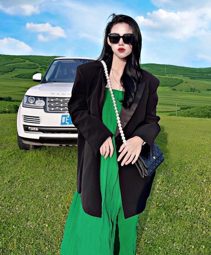 很顯白的黑綠系穿搭,不管是在秋冬,還是春天,都可以嘗試下黑綠撞色組合,大方得體又不失沉悶。中式的配色美學,帶着的是一絲清冷氣質。