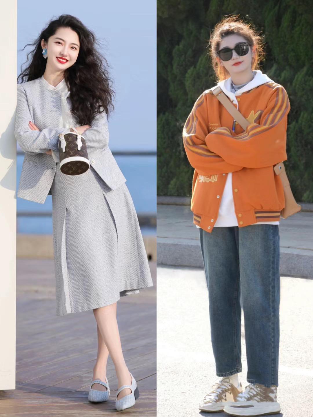 40歲左右的女人,更多的在職場單品。她們的早春穿搭,也應該是清爽而不沉悶的。比如利落的灰色套裙、橘色系的運動風外套,都可以安排起來。