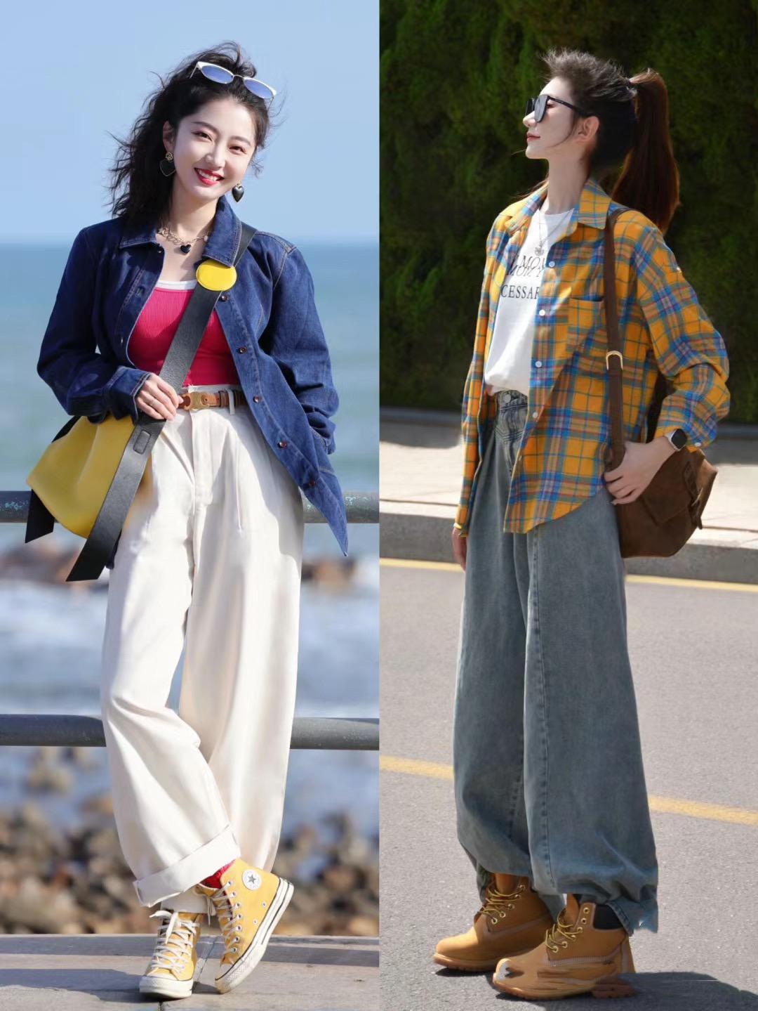 比如色彩明亮的包包、或者個性的帆布鞋、老爹鞋,都可以成爲更加時髦的點綴。利用少許的亮色點綴,更容易塑造出春日活潑。掩蓋年齡痕跡,透着俏皮青春的美。