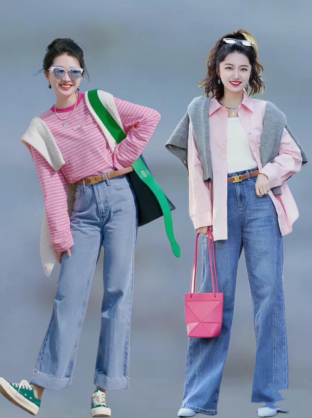 日常的搭配中,條紋襯衫+直筒牛仔褲,可以勾勒出雙腿的挺拔感。我們搭配直筒牛仔褲的時候,可以配及地的款式,也可以選擇卷邊的修飾,利落顯高。