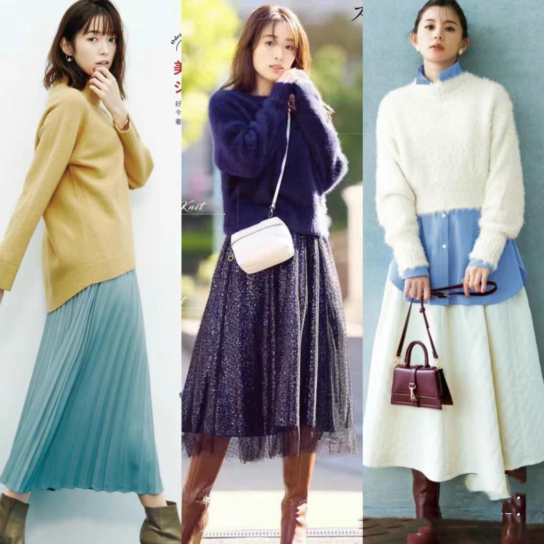 淺色系的針織衫,可以搭配飄逸的百褶半身裙,擁有一種更加隨性自在的美。稍微寬鬆的淺色針織衫,對於微胖的體型也很友好。搭配百褶半身裙、精緻浪漫又迷人。