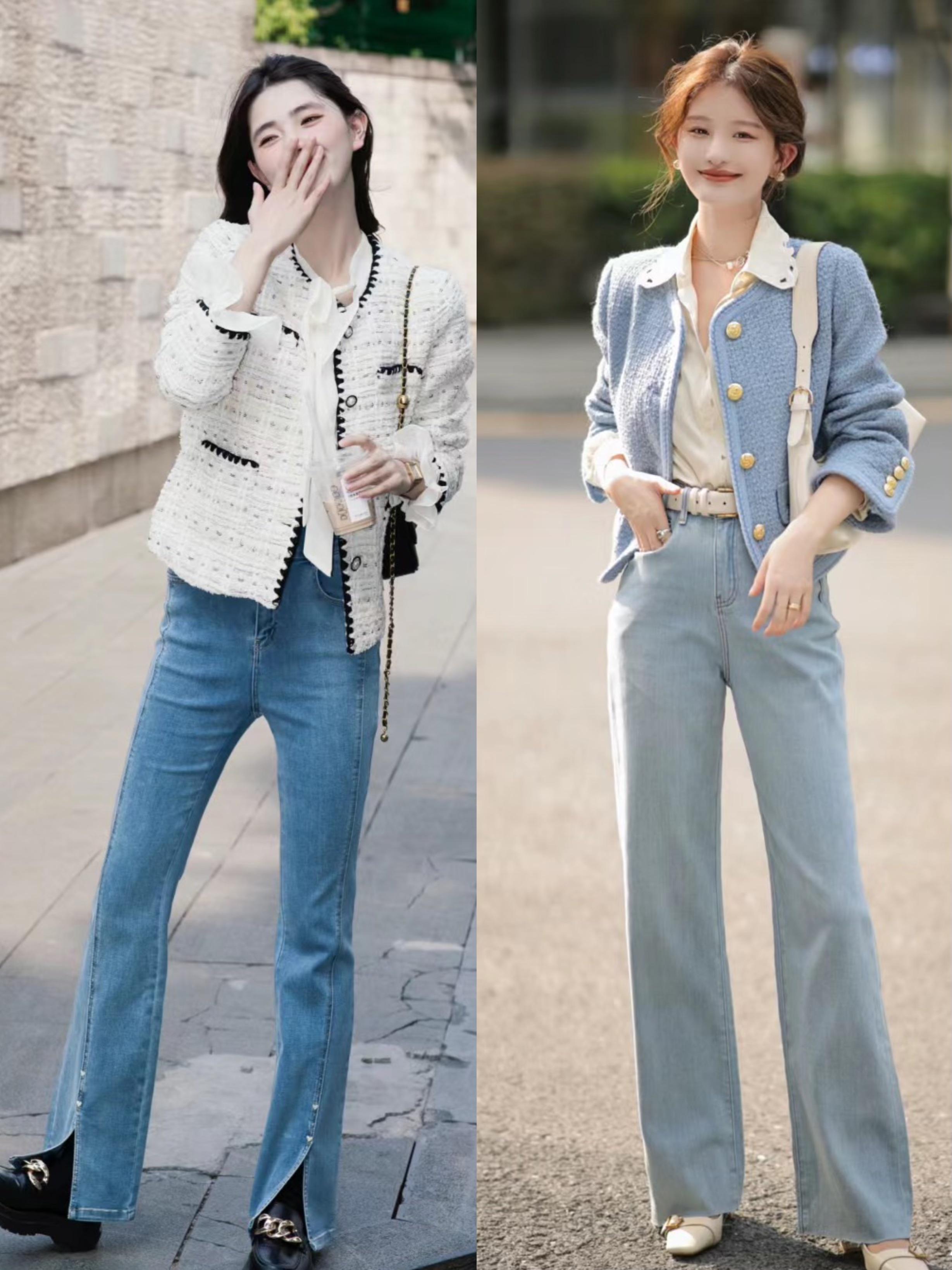 春天裏的直筒牛仔褲,也是百搭萬能單品。小香風外套的精緻、直筒牛仔褲的大方,搭配在一起更加清爽利落。