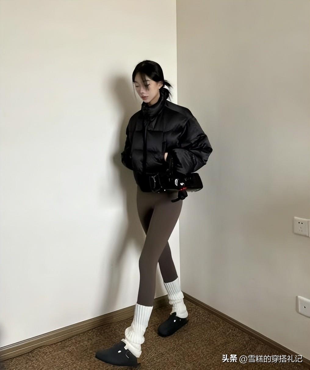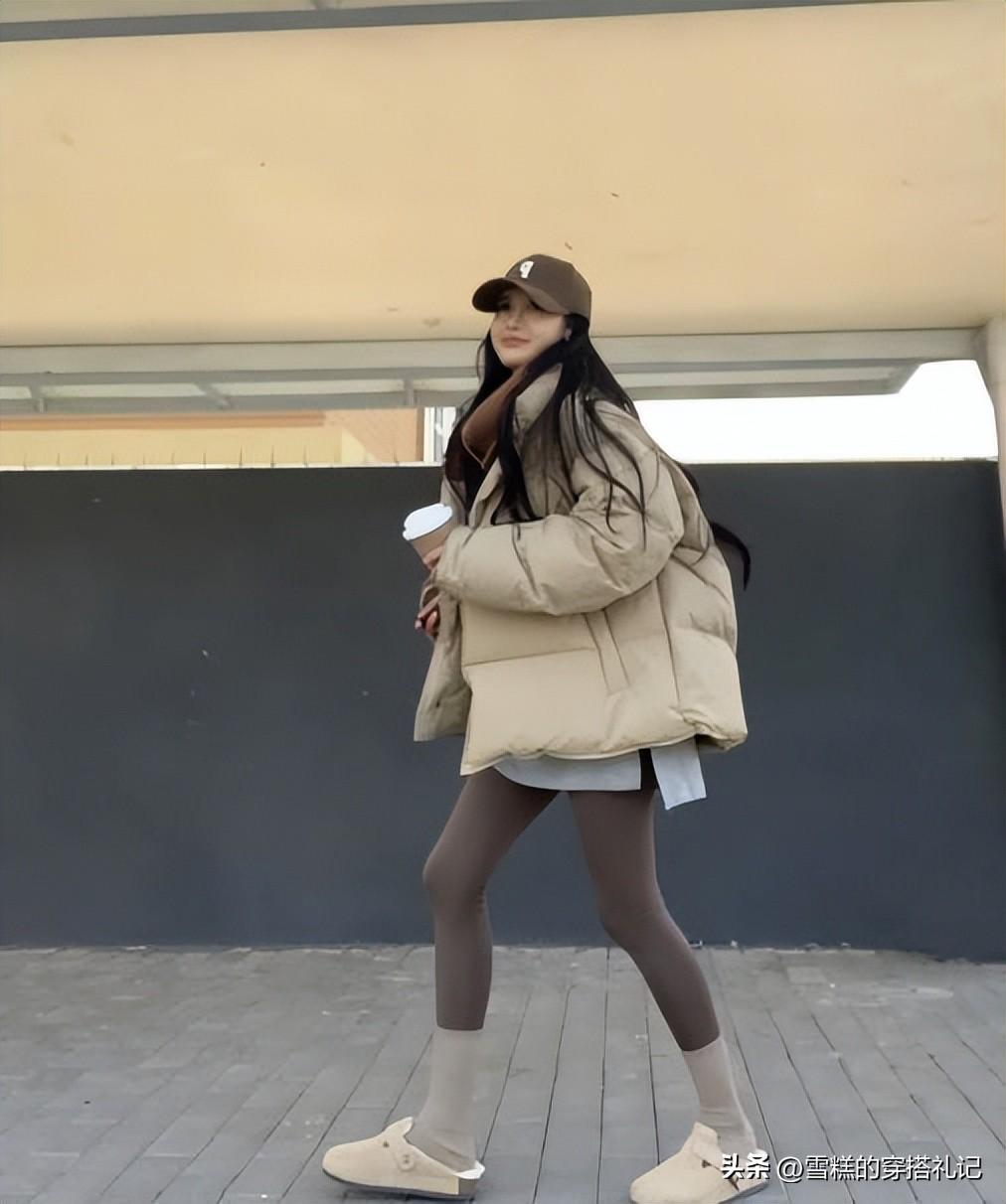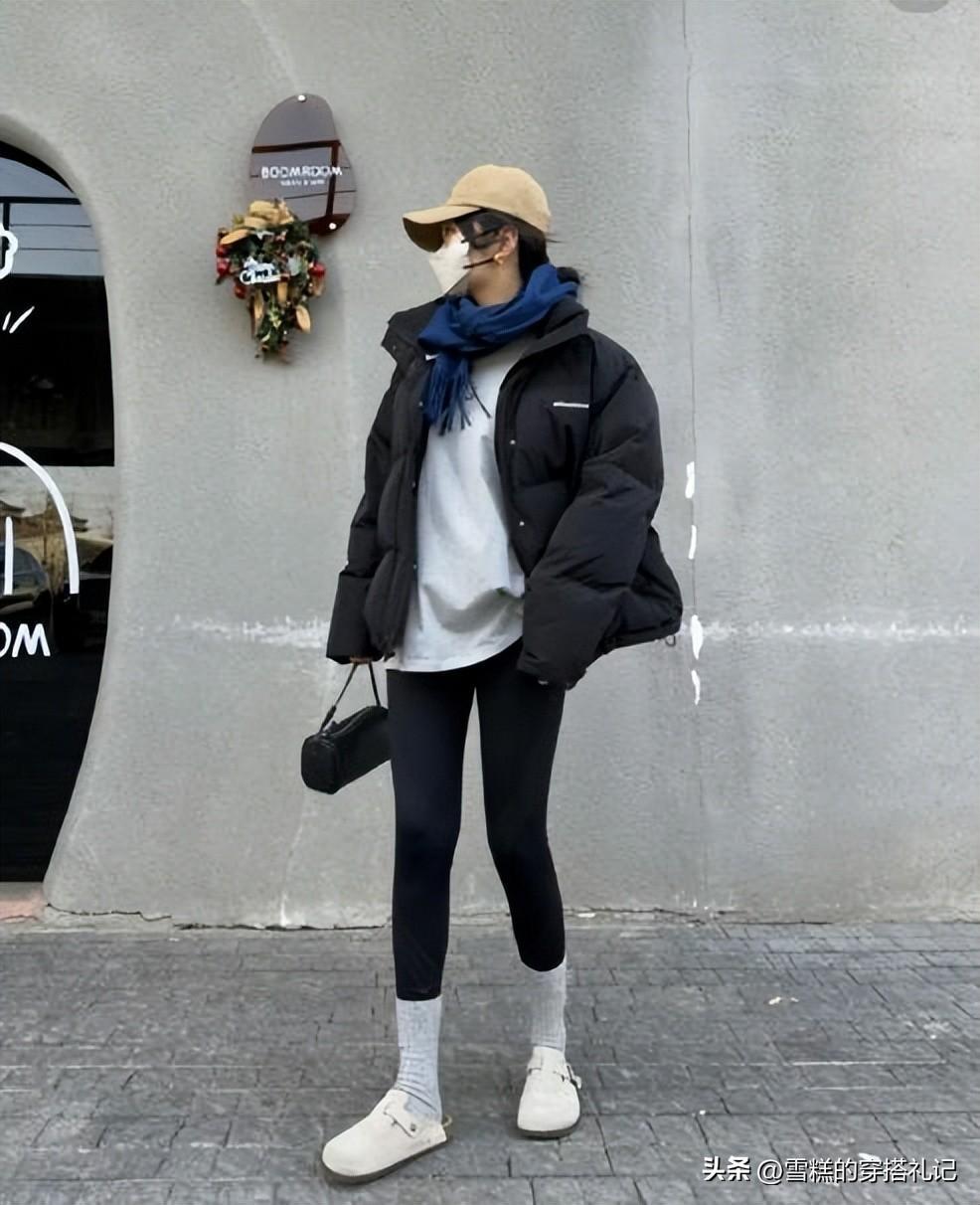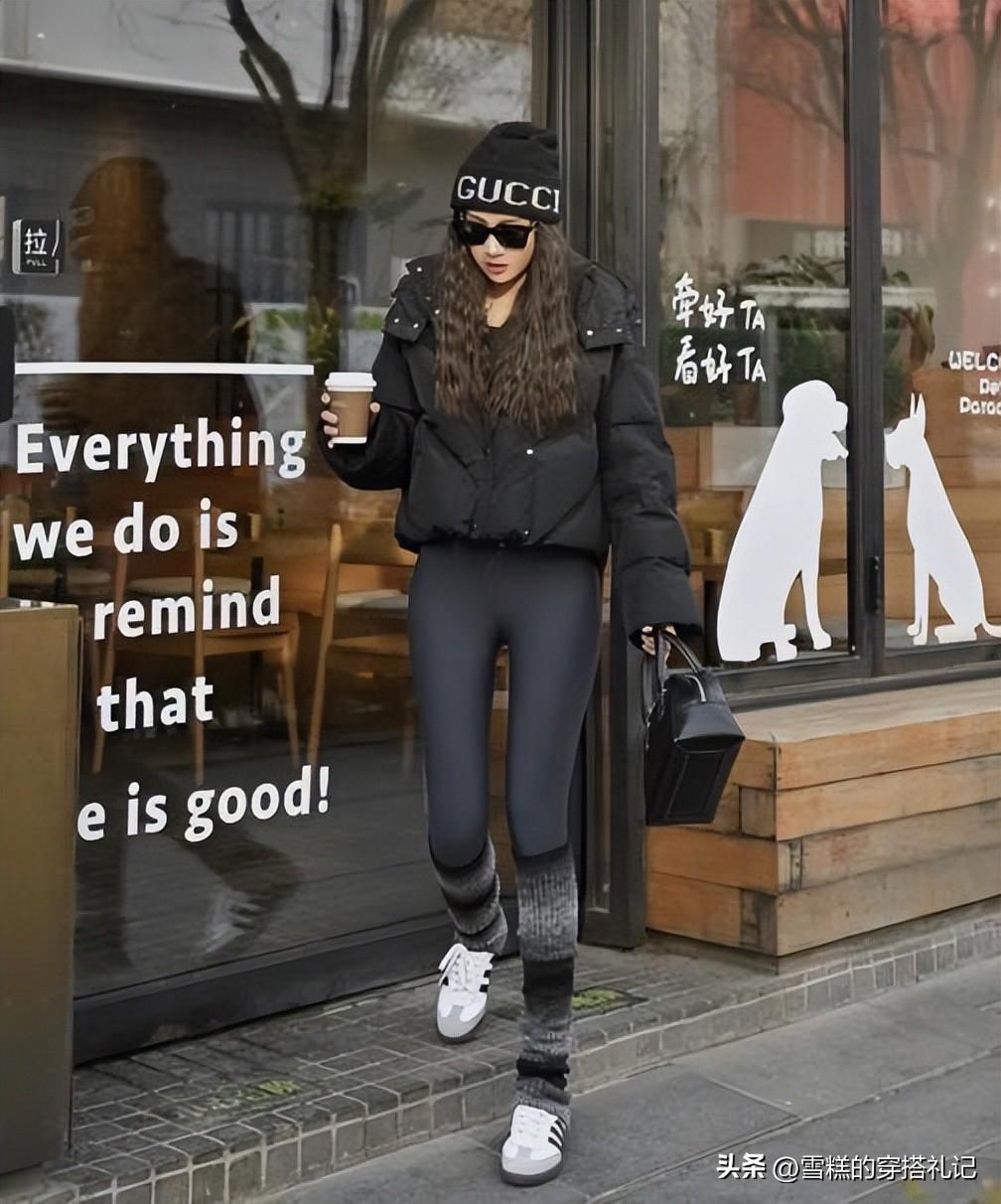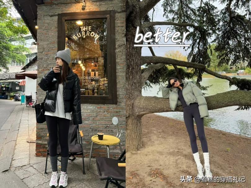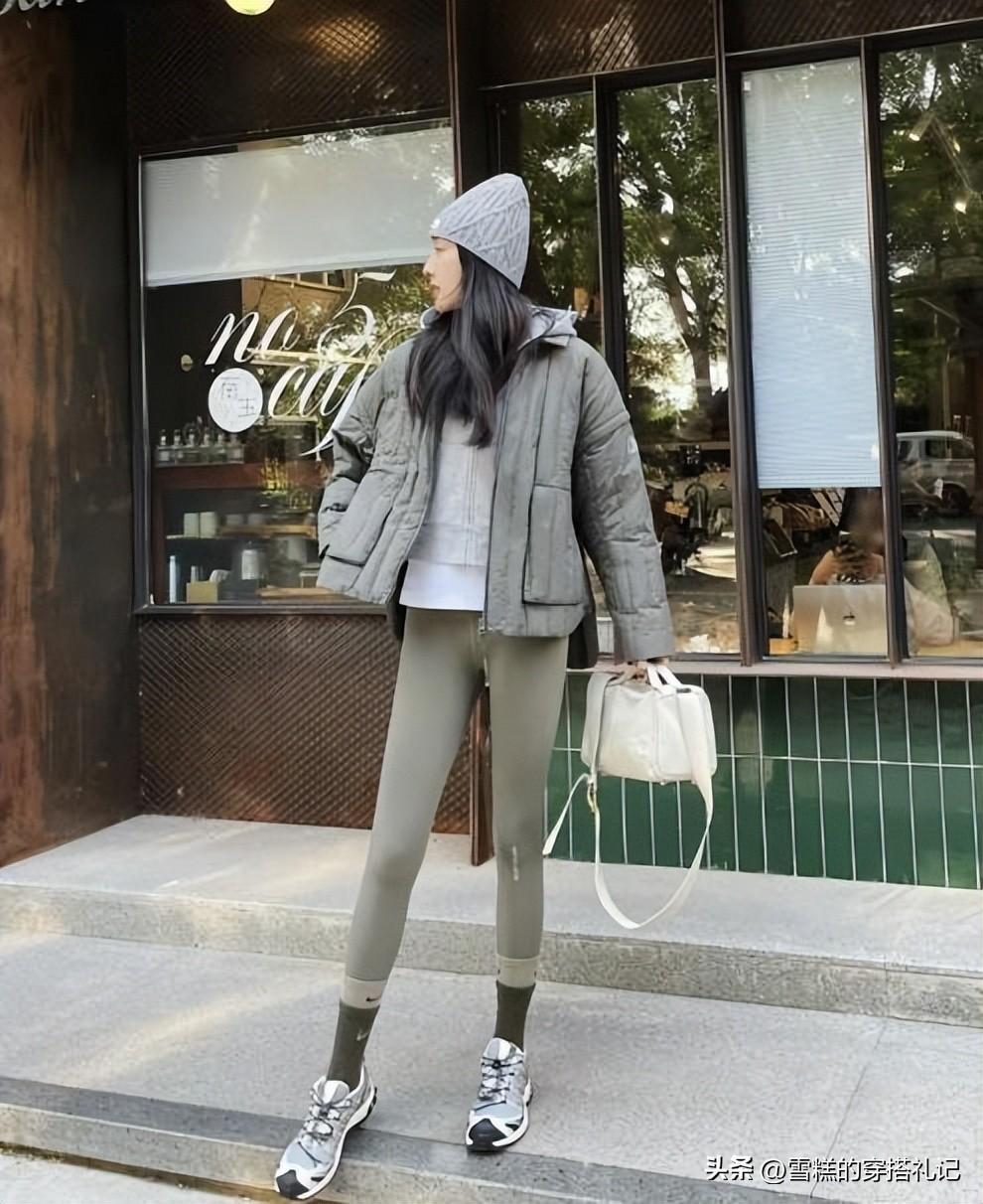 今年火了一種穿法,叫“上身棉服、下身瑜伽褲”,意外的好看顯瘦