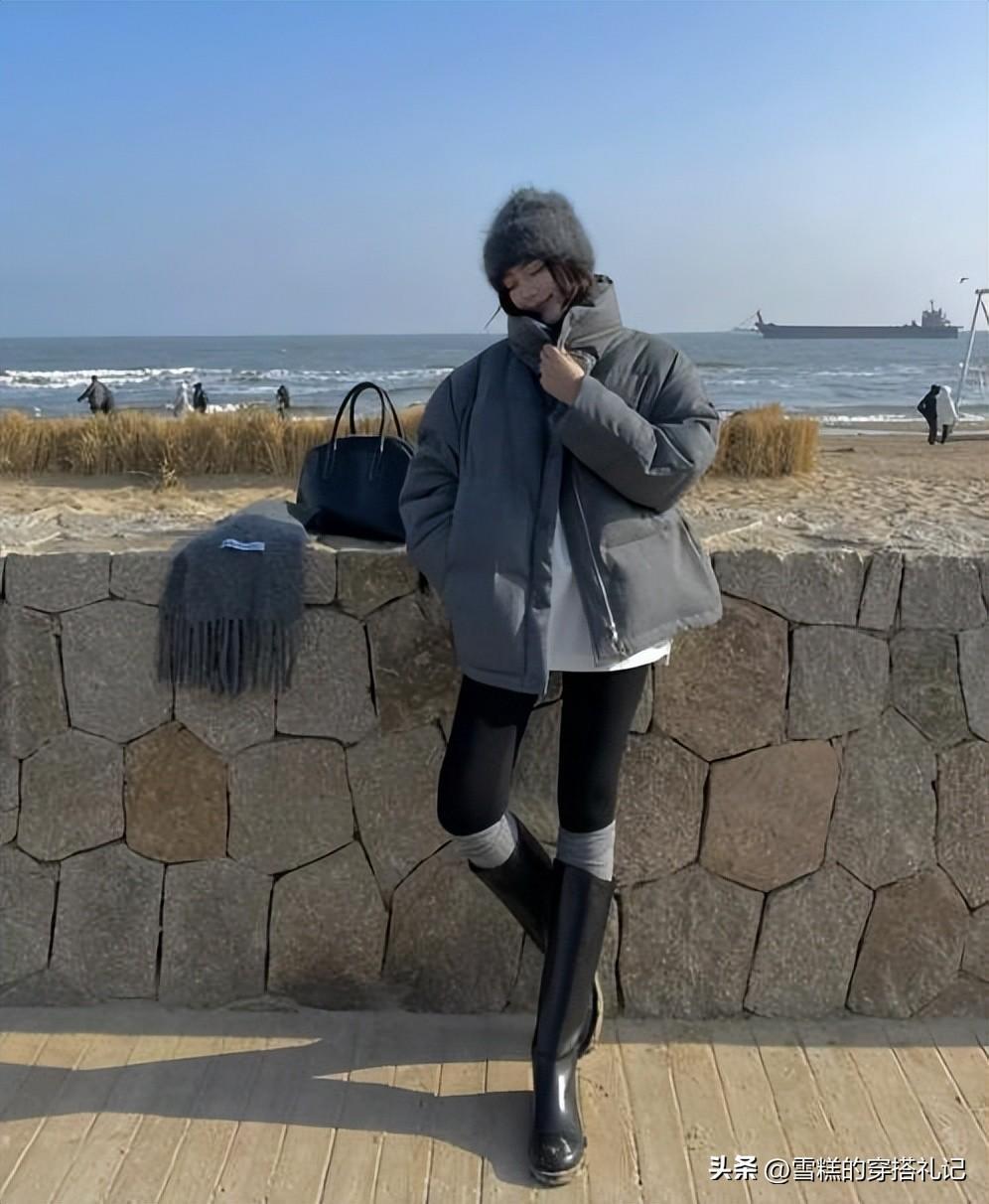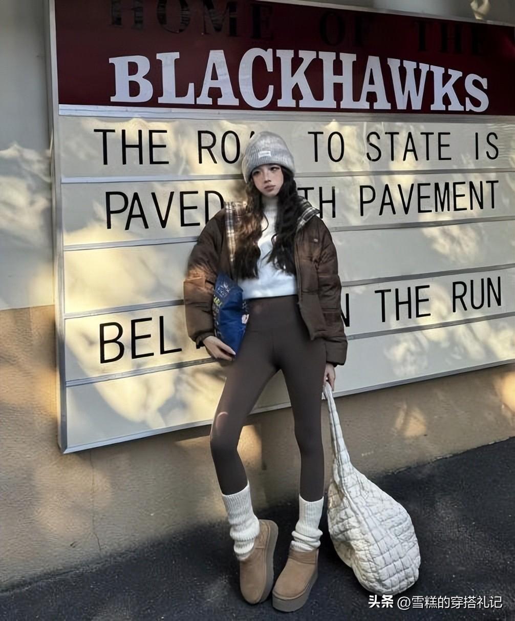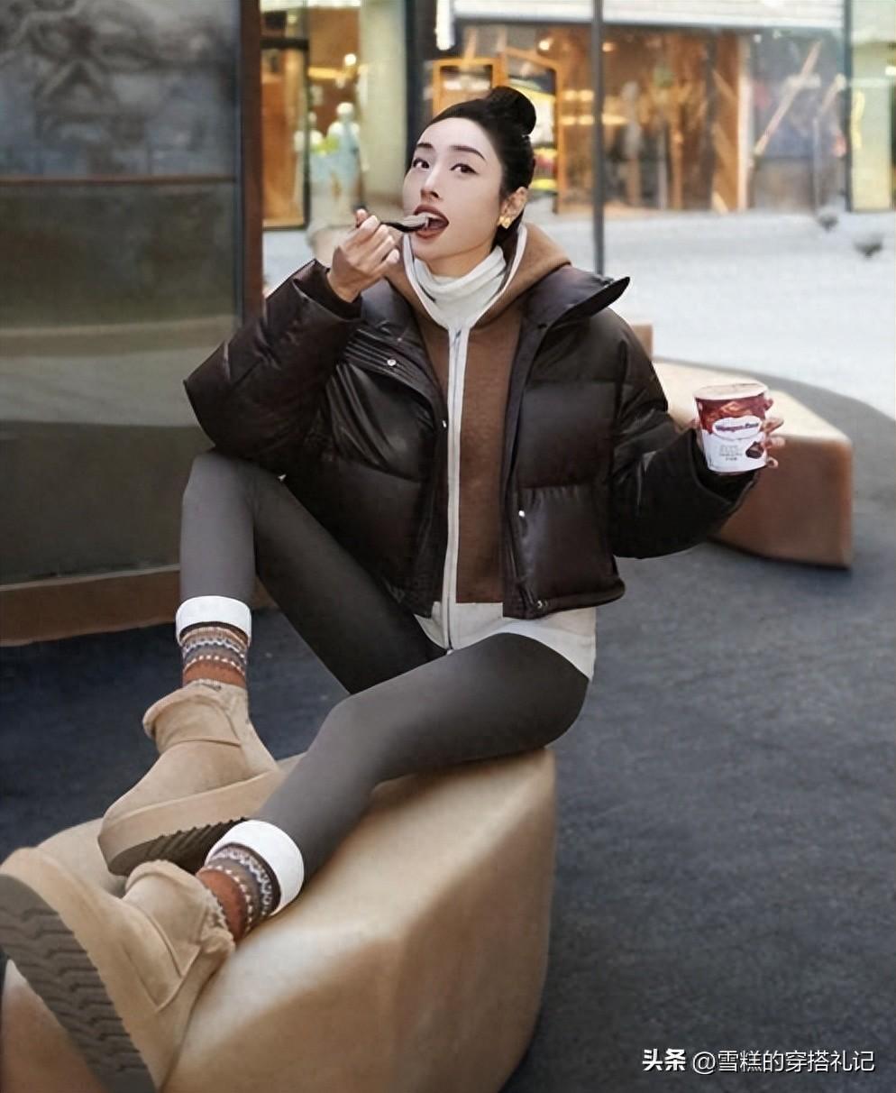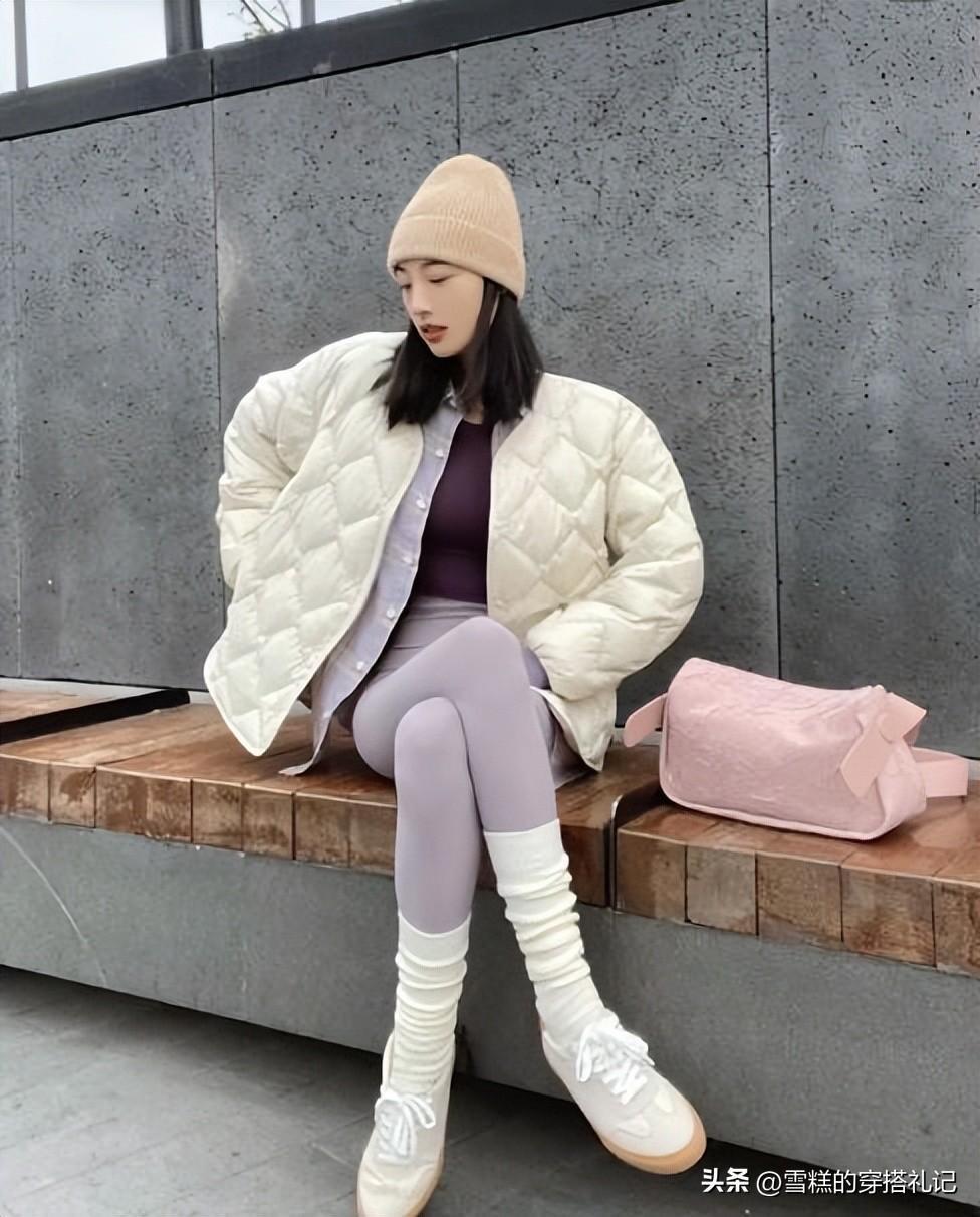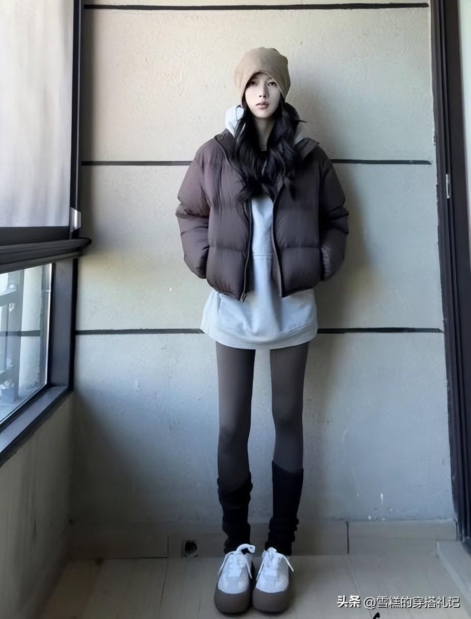 今年火了一種穿法,叫“上身棉服、下身瑜伽褲”,意外的好看顯瘦