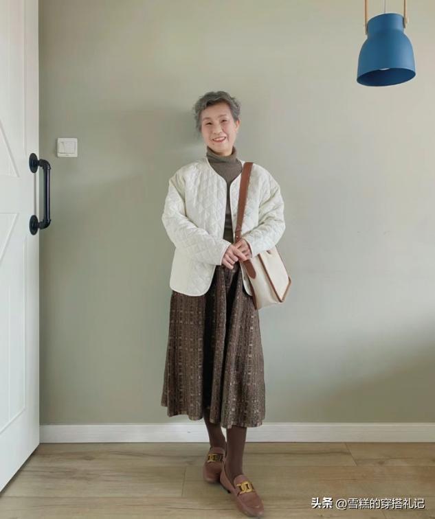 再者就是氣質提升是少不了高級衣物作爲點綴的,中老年女性對於服裝的挑選,有質感的選擇都比較偏厚,再考慮到秋冬保暖性穿搭需求的時候,加長或者加厚款式的外套或者裙子,都會成爲中年女性顯優雅的最佳選擇。
