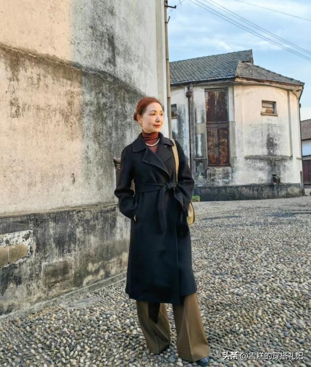 毛呢大衣的穿搭是萬能的,但是基礎的過細長度,能夠爲我們優化身材的縱向比例,提升分量的冬季着裝,外套可以選擇羊駝或者羊毛,有重量,但是也不會壓個子,年齡偏大的女人去選擇,用同色系的裙裝褲裝作爲組合,視覺上的疊穿效果也很上檔次。