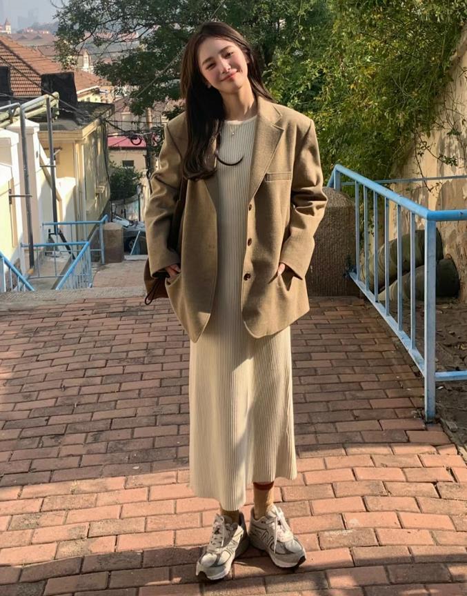 春天一到,又可以愉快穿起各種好看的裙子了,這套是溫暖明媚的韓劇女主穿搭,實在是太戳我了,卡其色西裝+杏色針織裙,整個配色很溫柔。