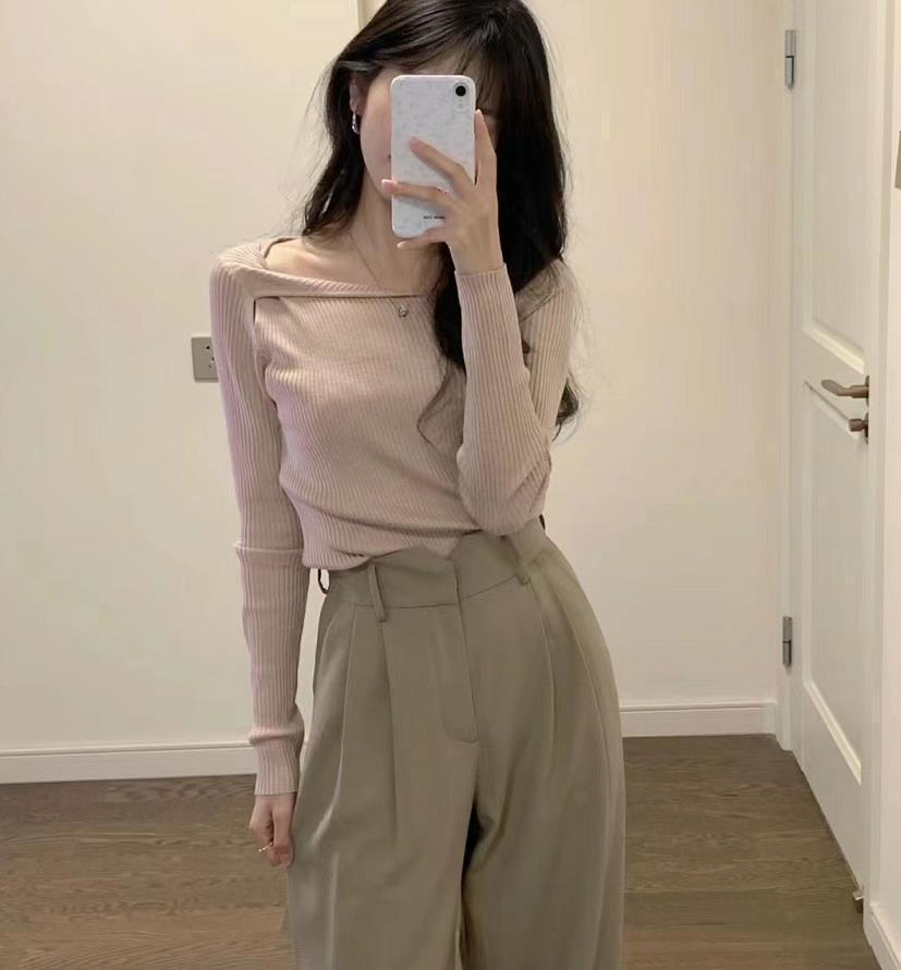 溫溫柔柔的粉色針織衫,上身後可是能瞬間把膚色襯托得很白皙的,也減齡,不過它的版型有些偏修身,有小肚腩就不建議穿了。