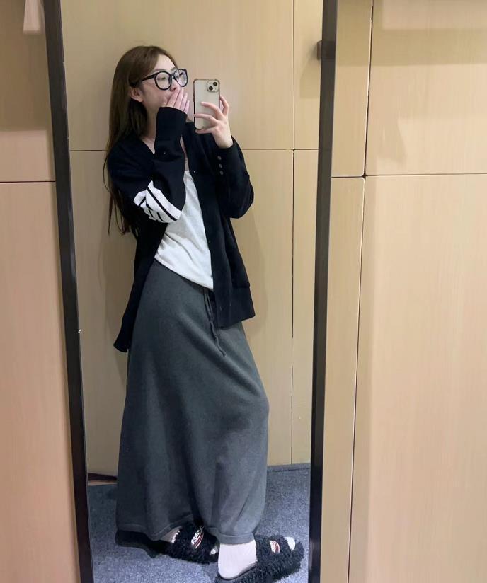 黑白灰的配色實在是太耐看了,黑色針織開衫,穿起來軟糯舒適和自在,搭配白色t恤和灰色半身長裙,又多了幾分日常和休閒感。