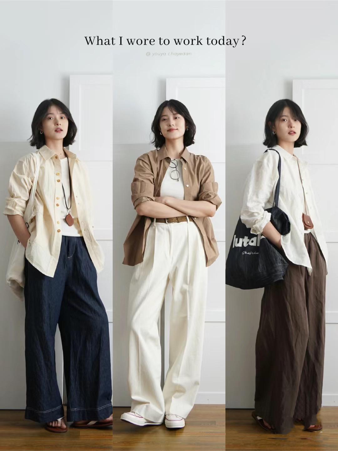面料挺闊的襯衫,我們儘量搭配純色系的款式。純色系的襯衫、比較挺闊的版型,穿起來利落又大方。