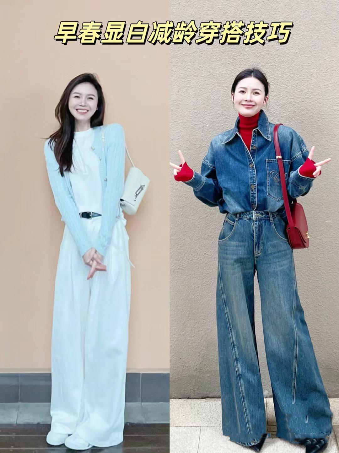 春天裏的闊腿褲,我們可以選擇比較垂順的面料,塑造出輕盈柔和的美。也可以搭配硬挺的牛仔面料,塑造出帥氣酷感的造型。不管是白色闊腿褲,還是牛仔闊腿褲都有自己的魅力。