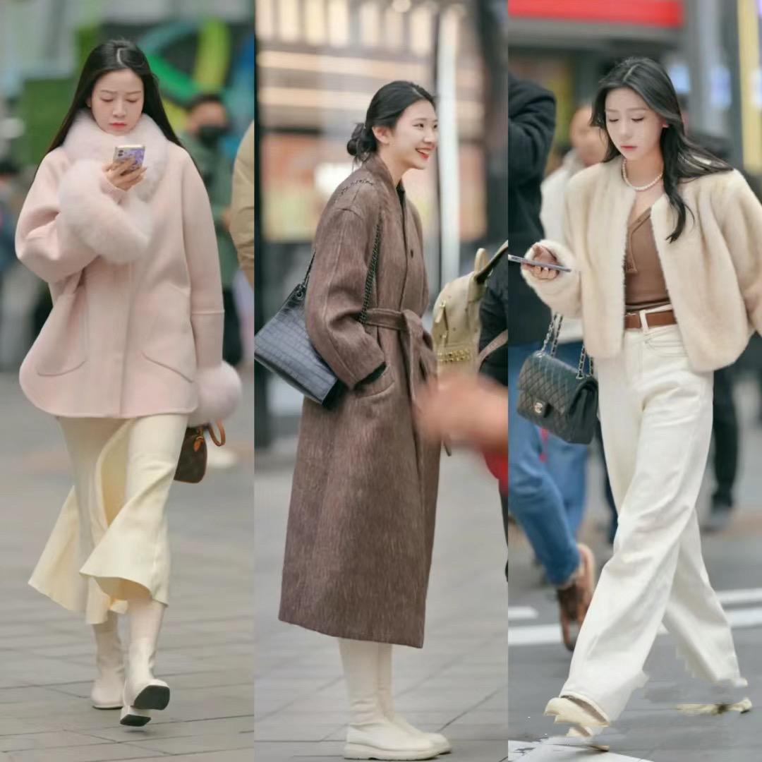 初春的重慶街頭,“時髦精”都在穿長大衣。稍微清新的米白色、配上毛絨衣袖的點綴、或者是國風元素的領口,都爲基礎款長大衣增添了無限風情。