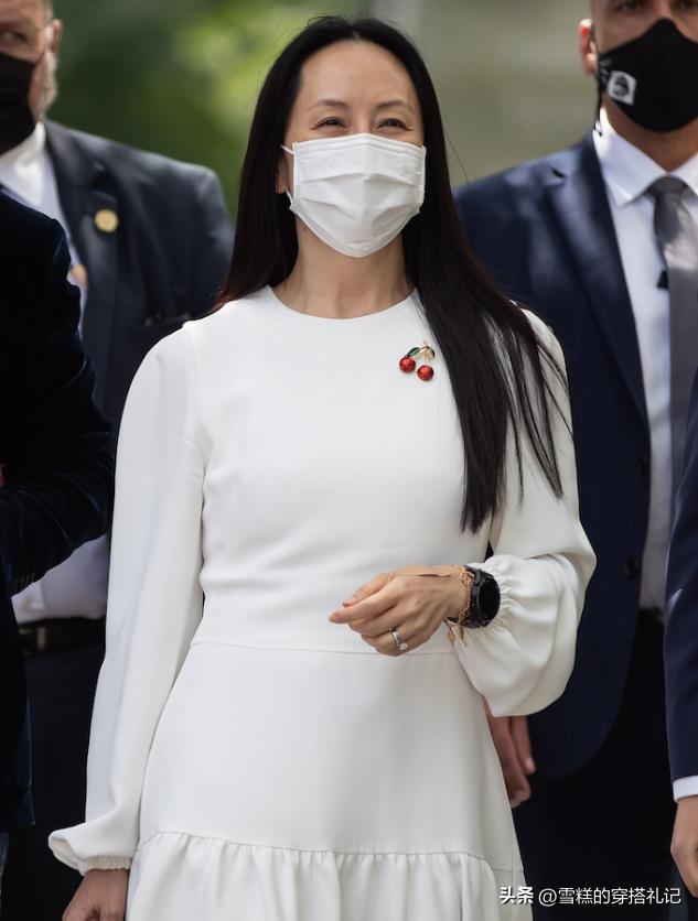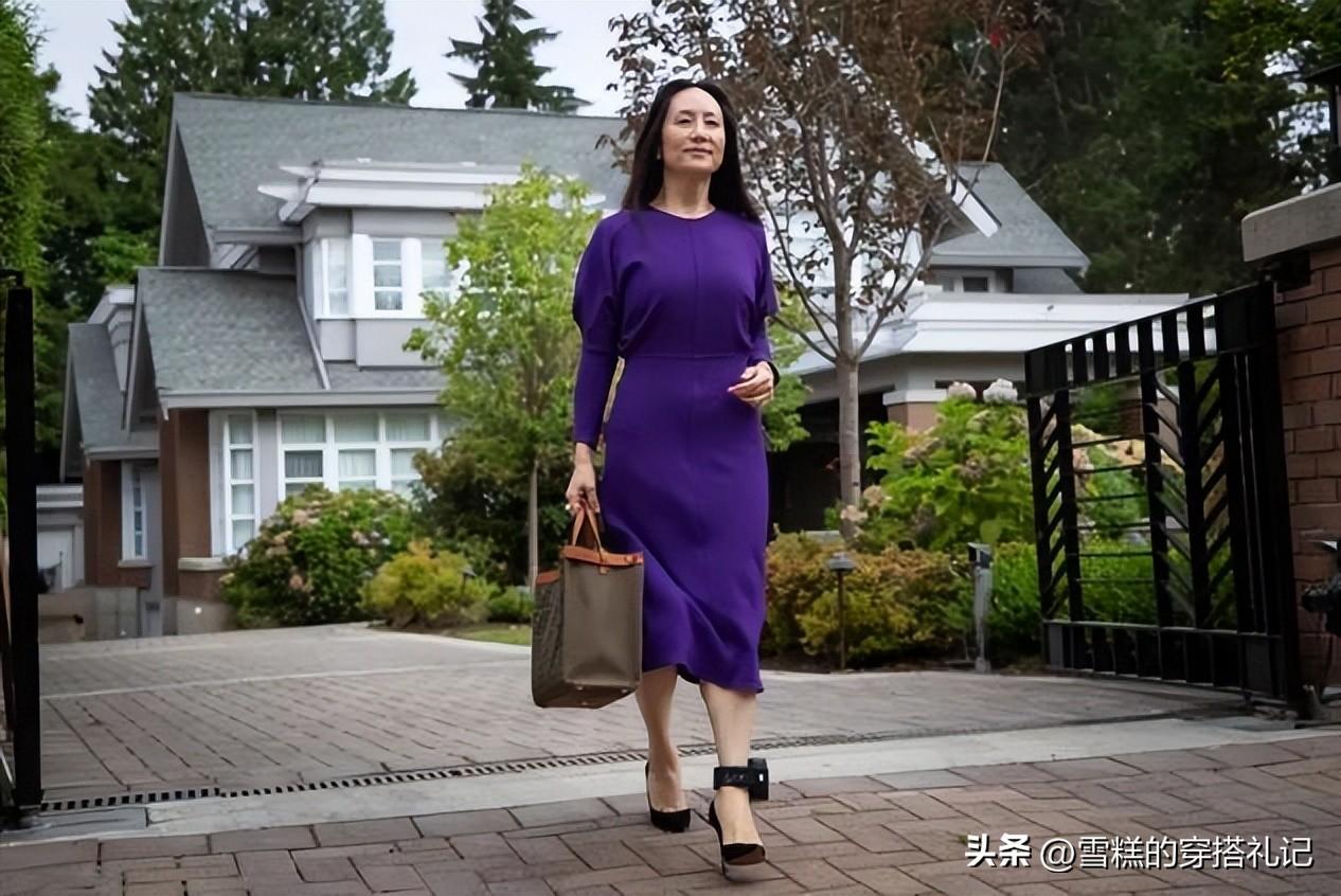 而且孟晚舟是典型的公衆人物,所以她的穿搭從更高層次來說,不僅僅代表着個人形象以及衣品審美,還代表着背後的集團形象,所以在款式的選擇上,也格外關注面料,通過高級感滿滿的面料來增加整體的氣質。比如在出席正式的商務活動時,孟晚舟通常都會選擇挺闊一些的西裝材質或者毛呢材質,更好地體現高級與華麗,而在氛圍感更加輕快一些的場合上,會穿一些帶有彩色調的雪紡連衣裙緞面連衣裙符合整體的輕鬆氛圍。