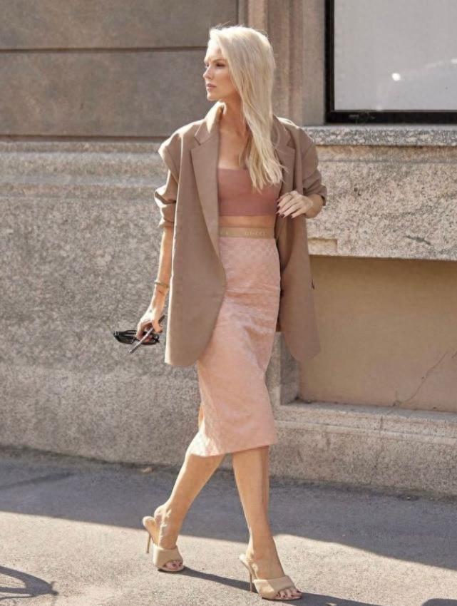 咖色代表的是厚重與實在,而粉色則代表女性的柔情與浪漫,暖調的咖色,與粉色組合在一起,爲你的造型帶來無限溫暖。這個春天,就試試粉色+咖色的穿搭,溫柔又高級。