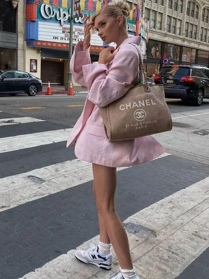 當粉色與咖色相配,就不失穩妥的了,既不失女性的力量感,又減齡。