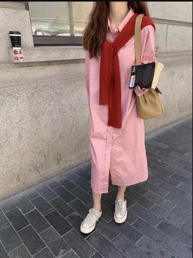 粉+咖色的穿搭,就是很讓人意外呢,完全沒有違和感的,有點厚實的粉色長袖襯衫,南方姐妹應對春天的溫度正好。