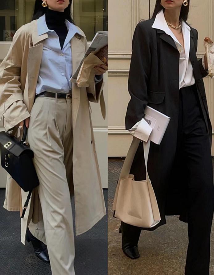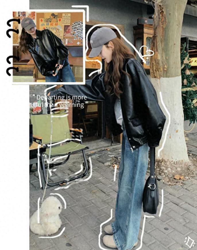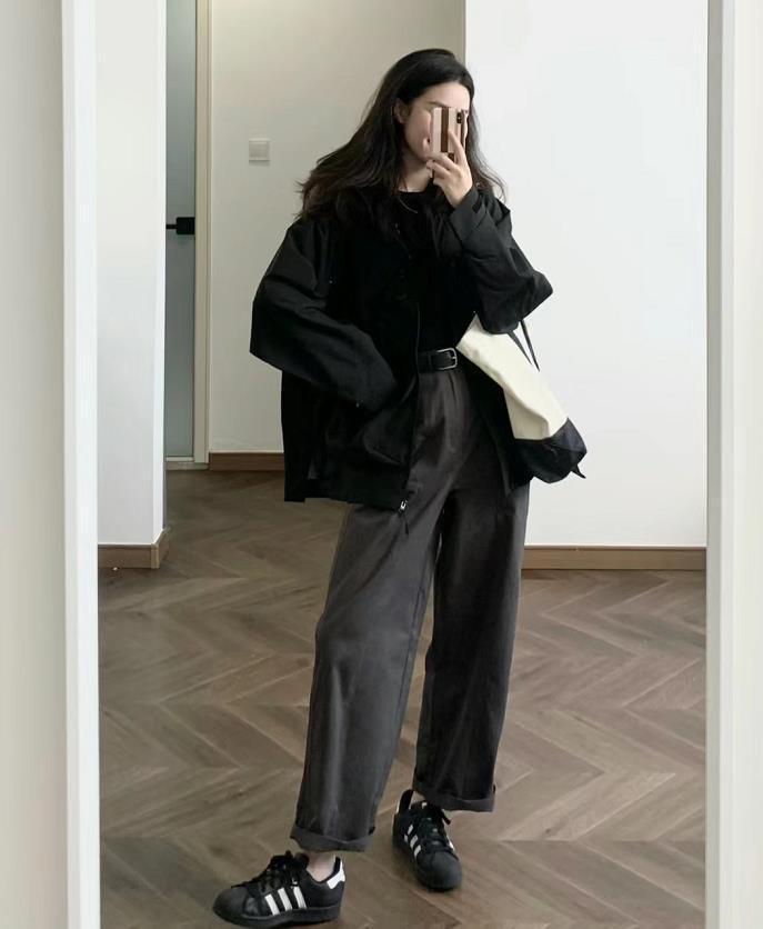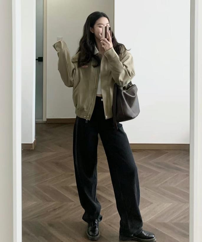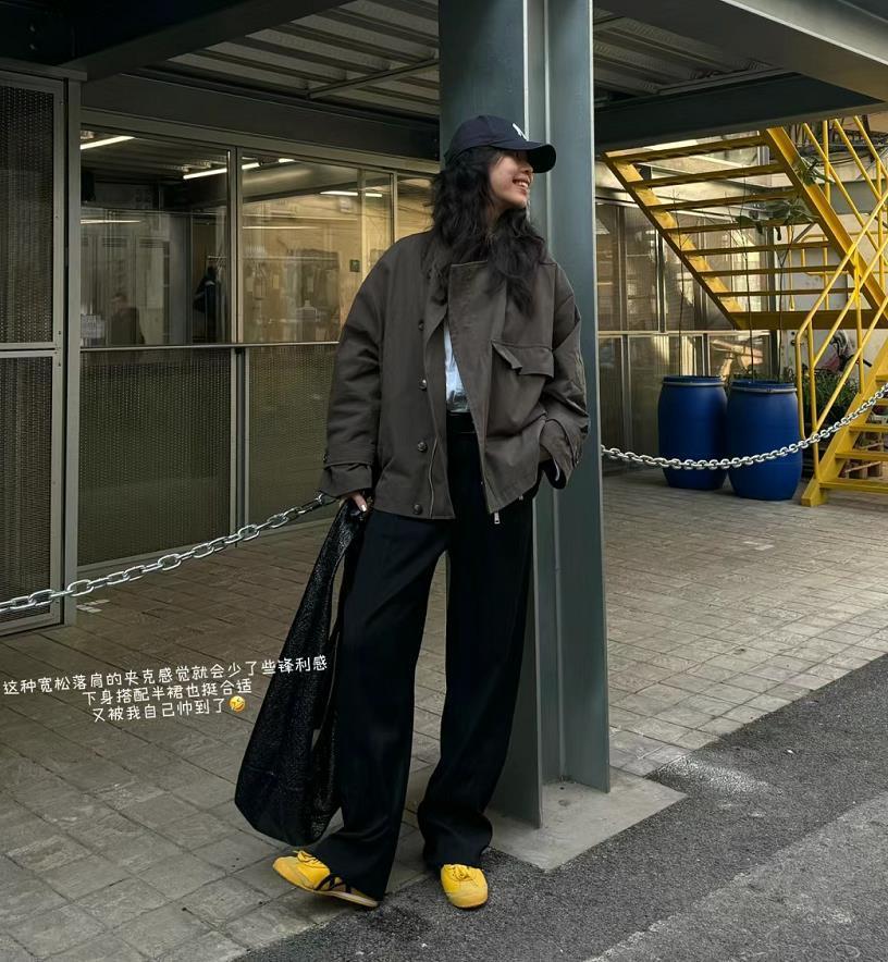 既適合打工人,又可以逛街的時候穿,美式復古酷帥感十足,早春季節,溫度還是有些不穩定的,出門記得選一件外套來穿。