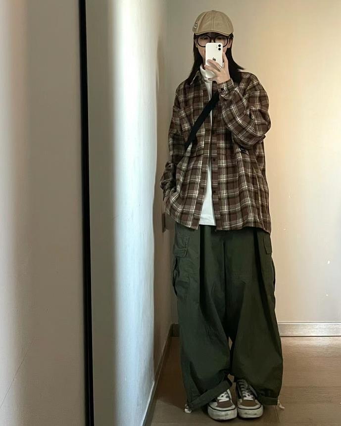 該怎麼形容這種感覺呢?美拉德色系的格子襯衫,寬鬆的版型下,不僅能帶給你一種舒適自在感,還很休閒。