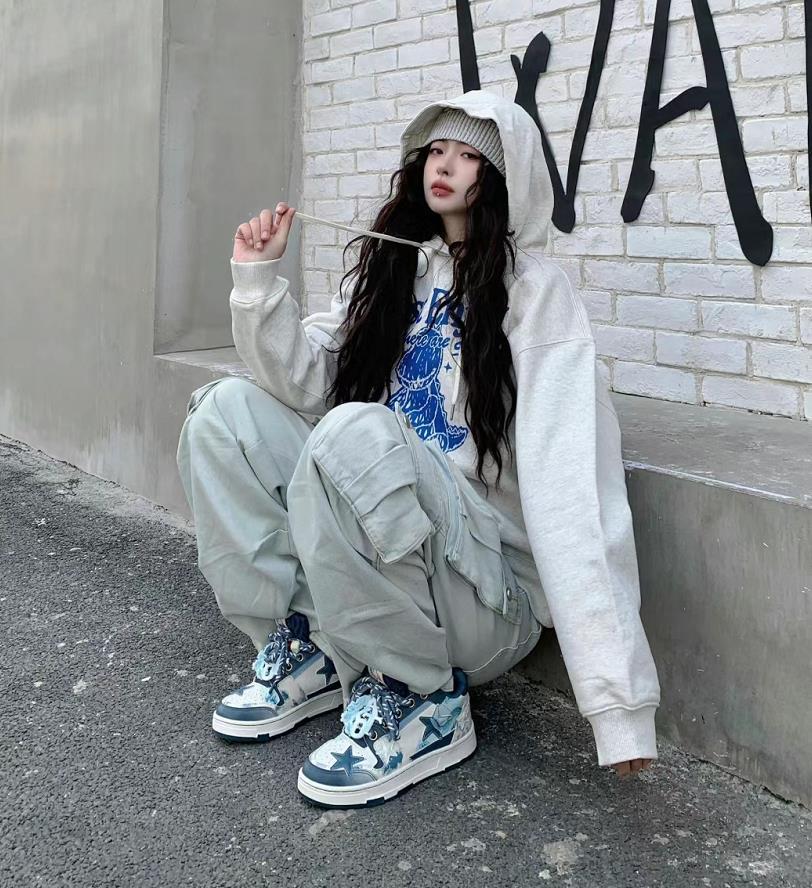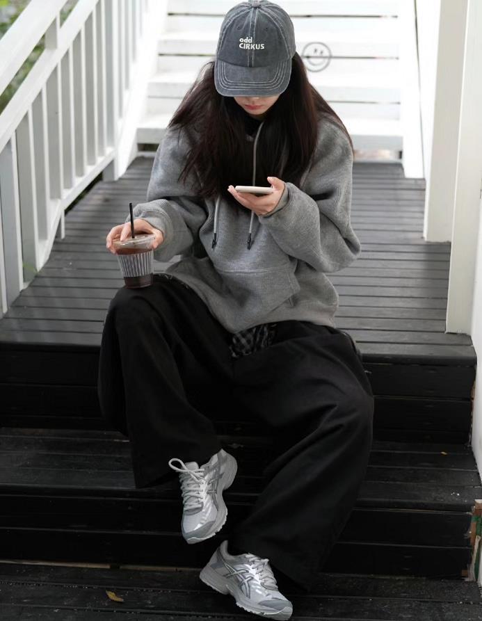 穿不膩的灰色系穿搭,復古街頭風十足,連帽衛衣+工裝褲+運動鞋,這樣的穿搭組合實在是太不失青春洋氣感了,滿滿的活力。