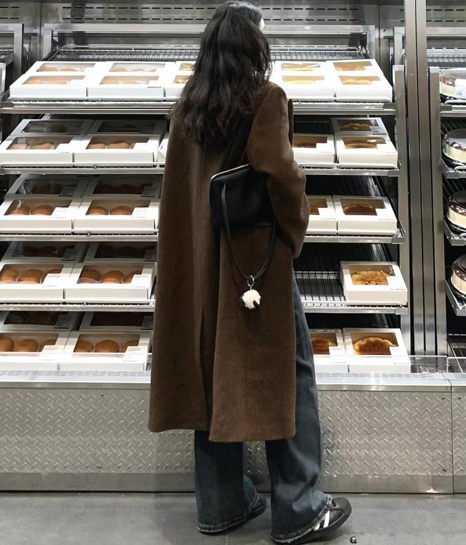 復古又慵懶的穿搭,看起來又拽又自由的,鬆弛感的衣服,穿起來不僅舒適,還有着無限的可能。深棕色大衣+牛仔褲,很有範帶點中性的味道。