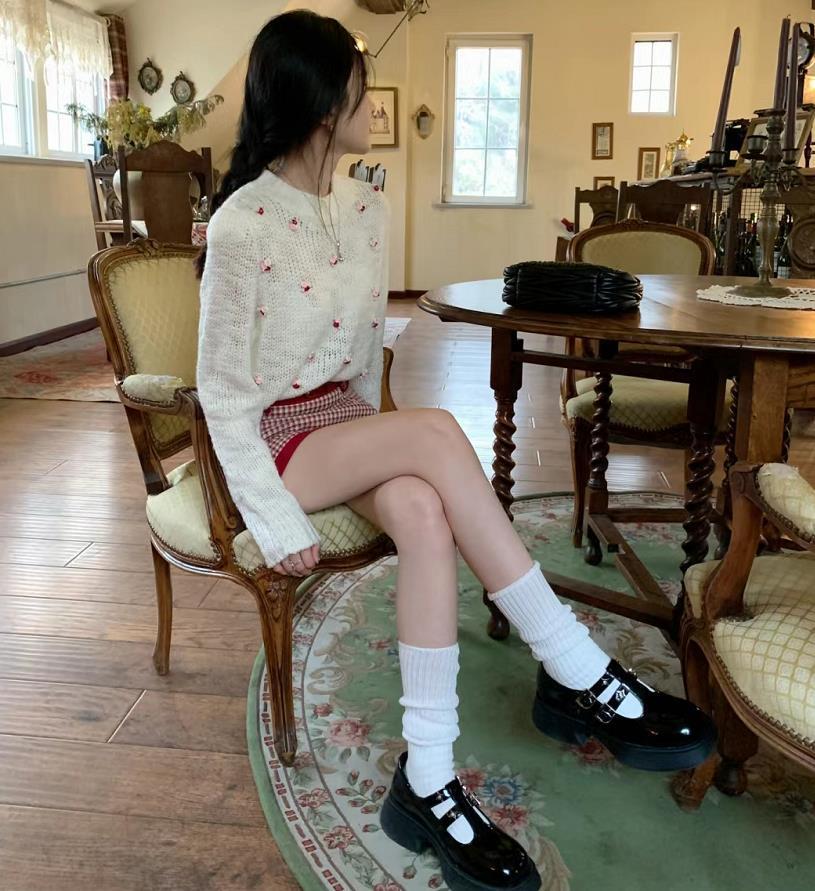挺顯復古洋氣的一套,適合逛街約會的時候穿,黑色瑪麗珍單鞋就是打造少女風的絕配,厚底的設計,是小個子的福音。