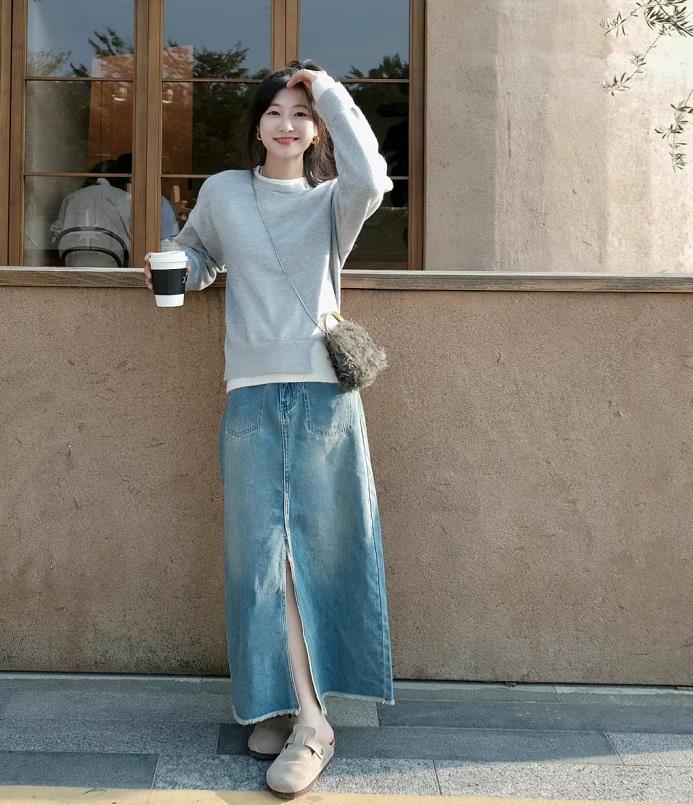 鬆弛感的穿搭,我大概是沒有拒絕的,牛仔裙+毛衣,南方的姐妹們在早春這樣穿正好。搭配勃肯鞋,好一個輕鬆自在的鬆弛感搭配。