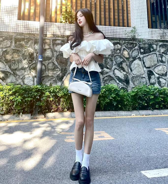 下身玩失蹤的穿法,在春夏季節是比較合適的,也很適合小個子女生們,輕鬆在視覺上打造出高挑感。