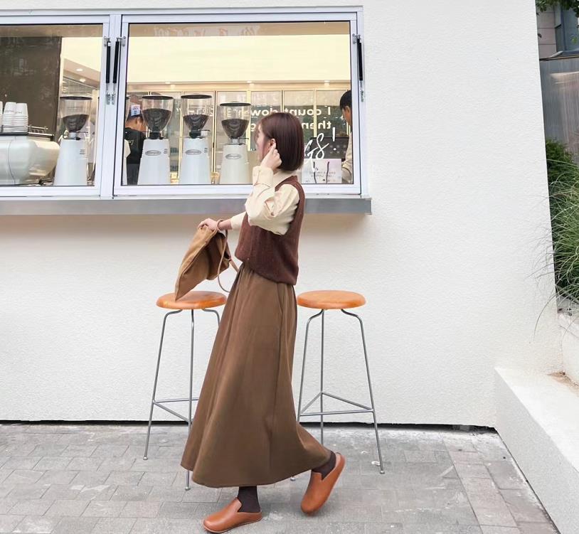 誰懂啊姐妹們,對於同色系的搭配沒有一點抵抗力,省心不出錯還顯高級,上身利用起疊穿,襯衫+毛衣馬甲,學院風氣息滿滿,超減齡的。