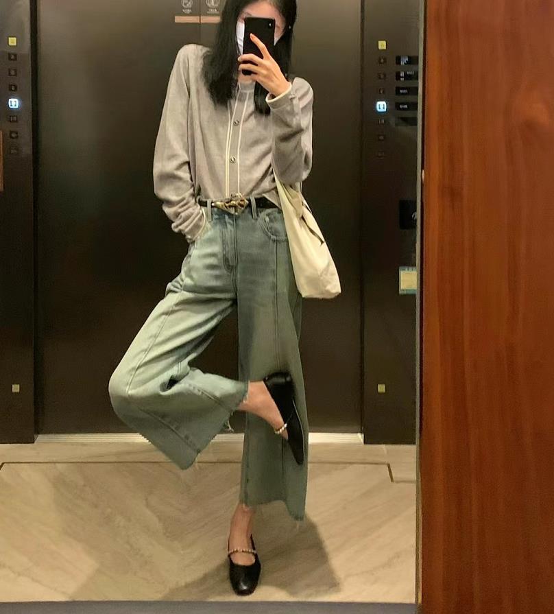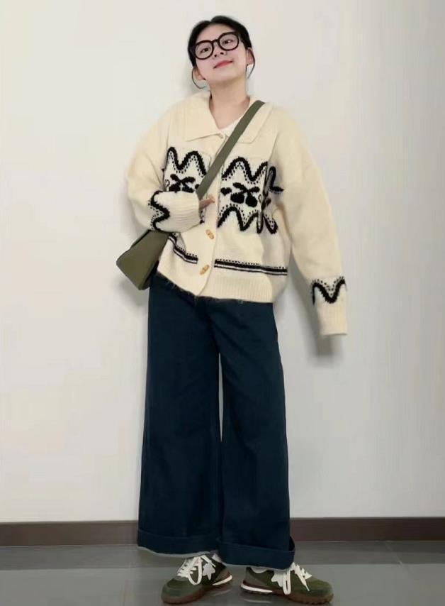 適合逛街上班的穿搭,針織衫+牛仔褲,蠻輕鬆日常的,直筒寬鬆的褲型襯托,顯瘦更藏肉。黑色瑪麗珍單鞋的點綴,更添舒適感。