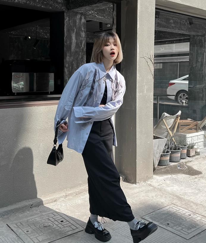 通勤上班的姐妹,襯衫+西裝褲+瑪麗珍單鞋,氣質又不失幹練。