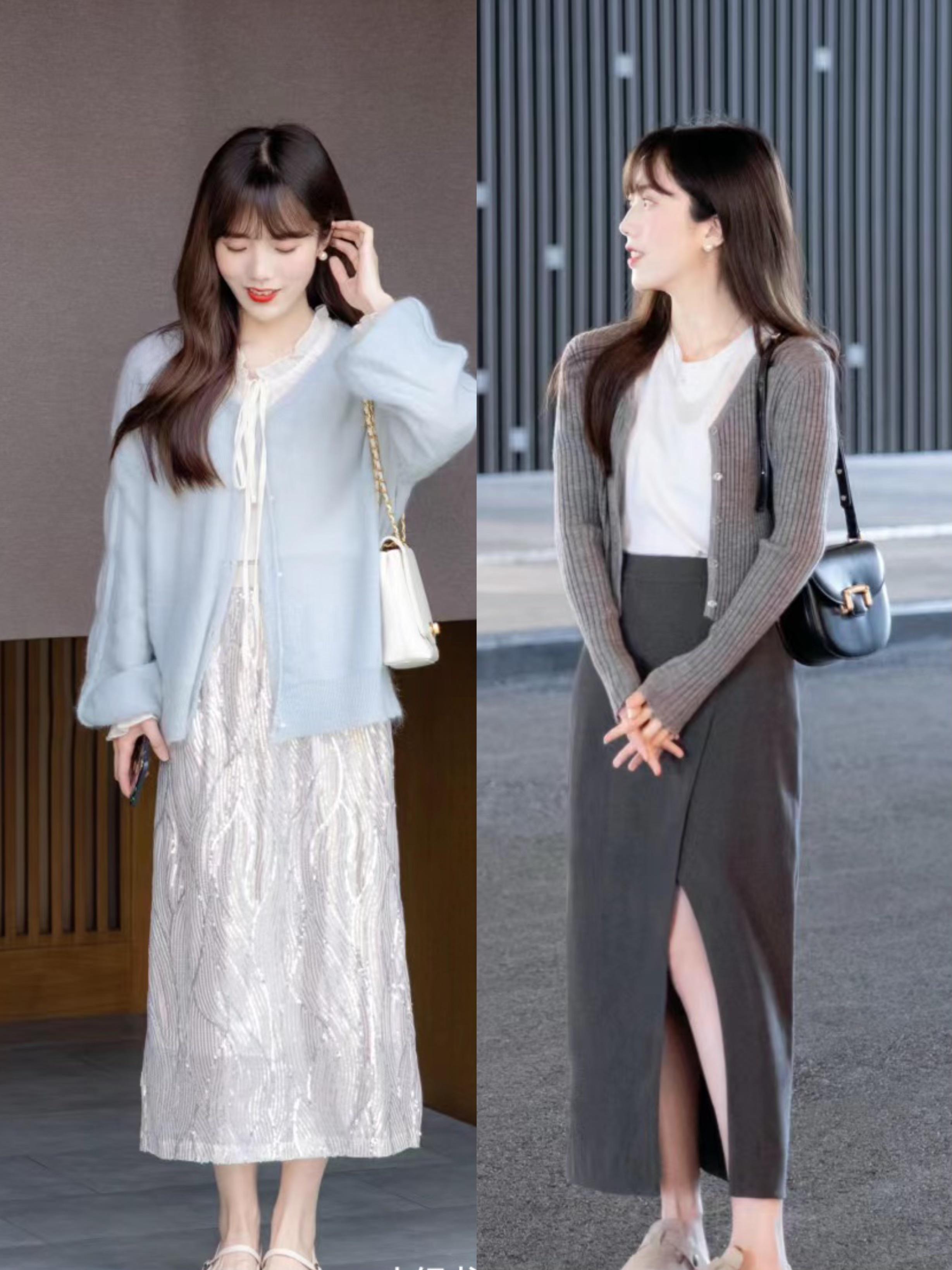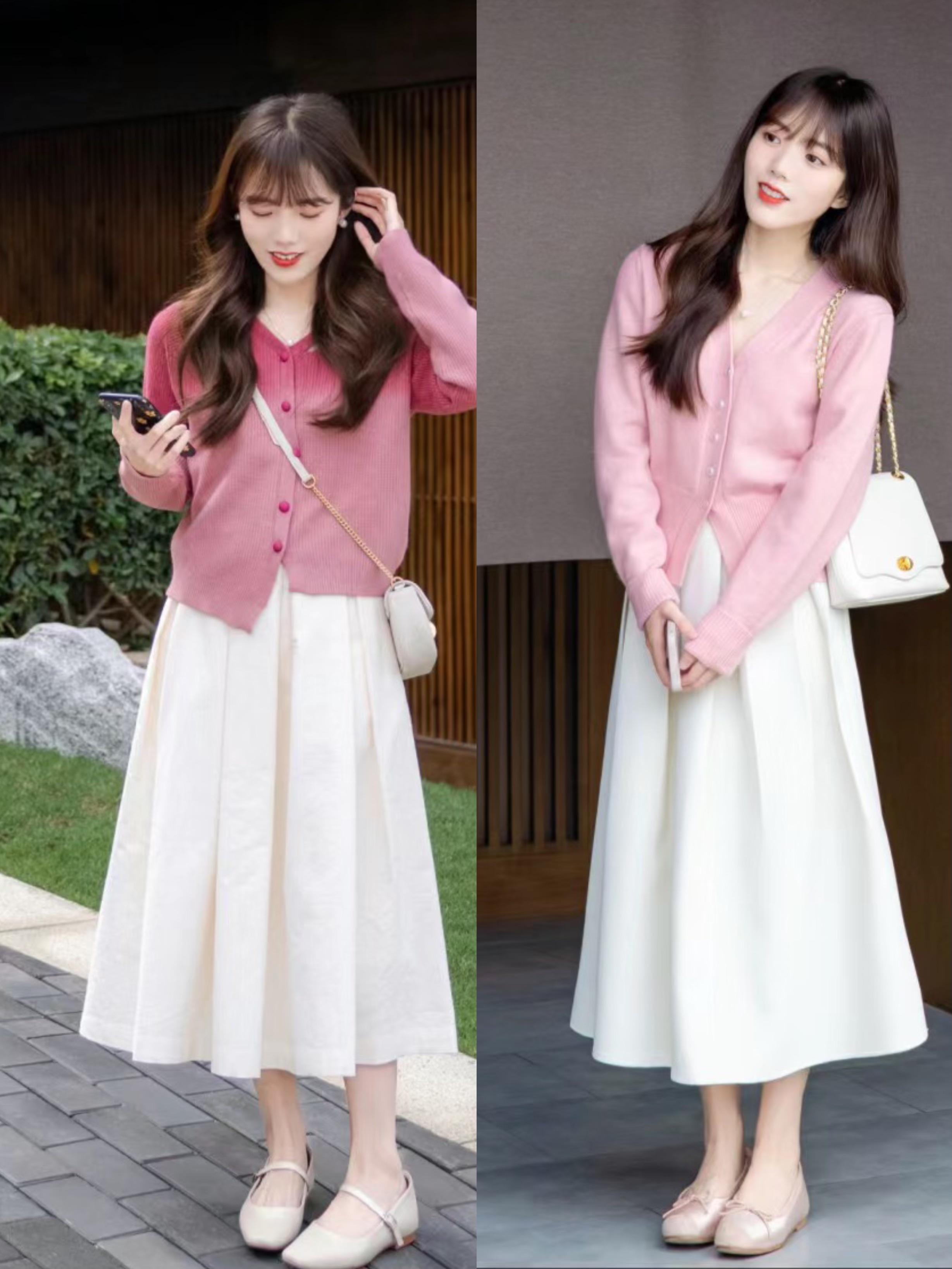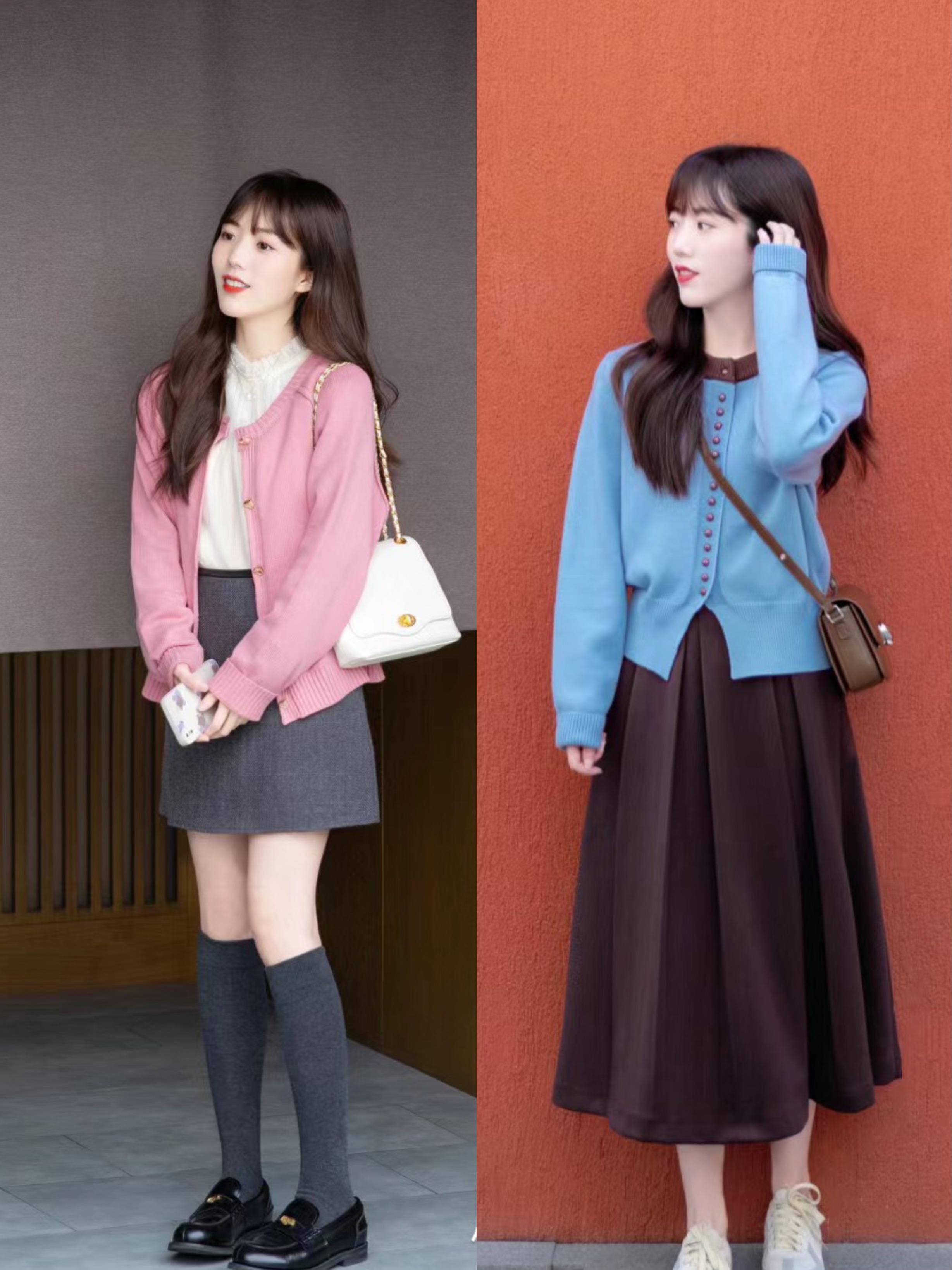 針織開衫的可塑性更強,穿着方式也更加多樣。針織開衫可以當做外套、也可以作爲內搭,在春天裏輕薄的針織開衫,配上白色吊帶也是清新甜美的。