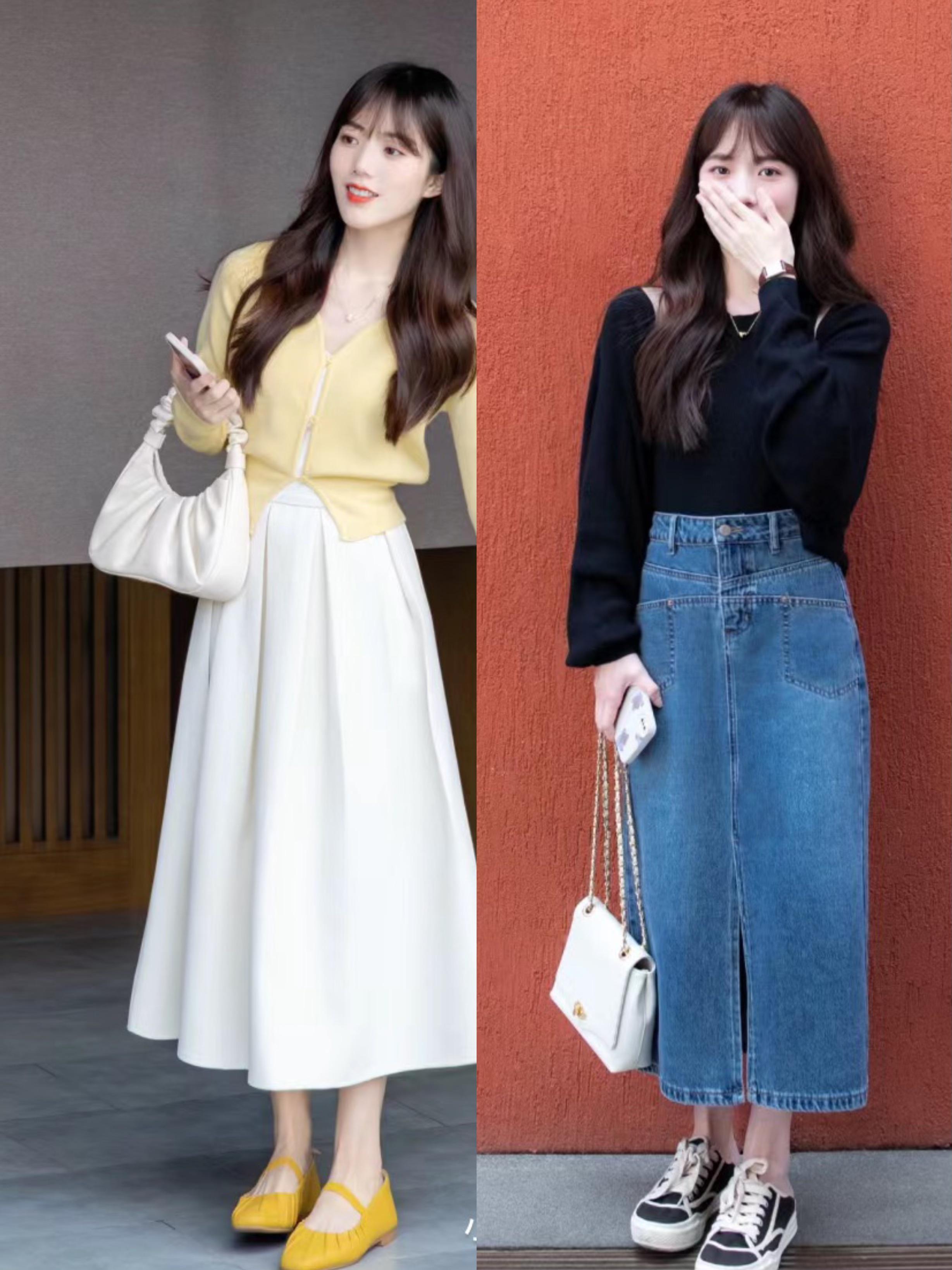 高腰的半身裙,我們可以選擇直筒的牛仔半身裙、厚實的面料防風又保暖,帶着青春的魅力也格外耐看。