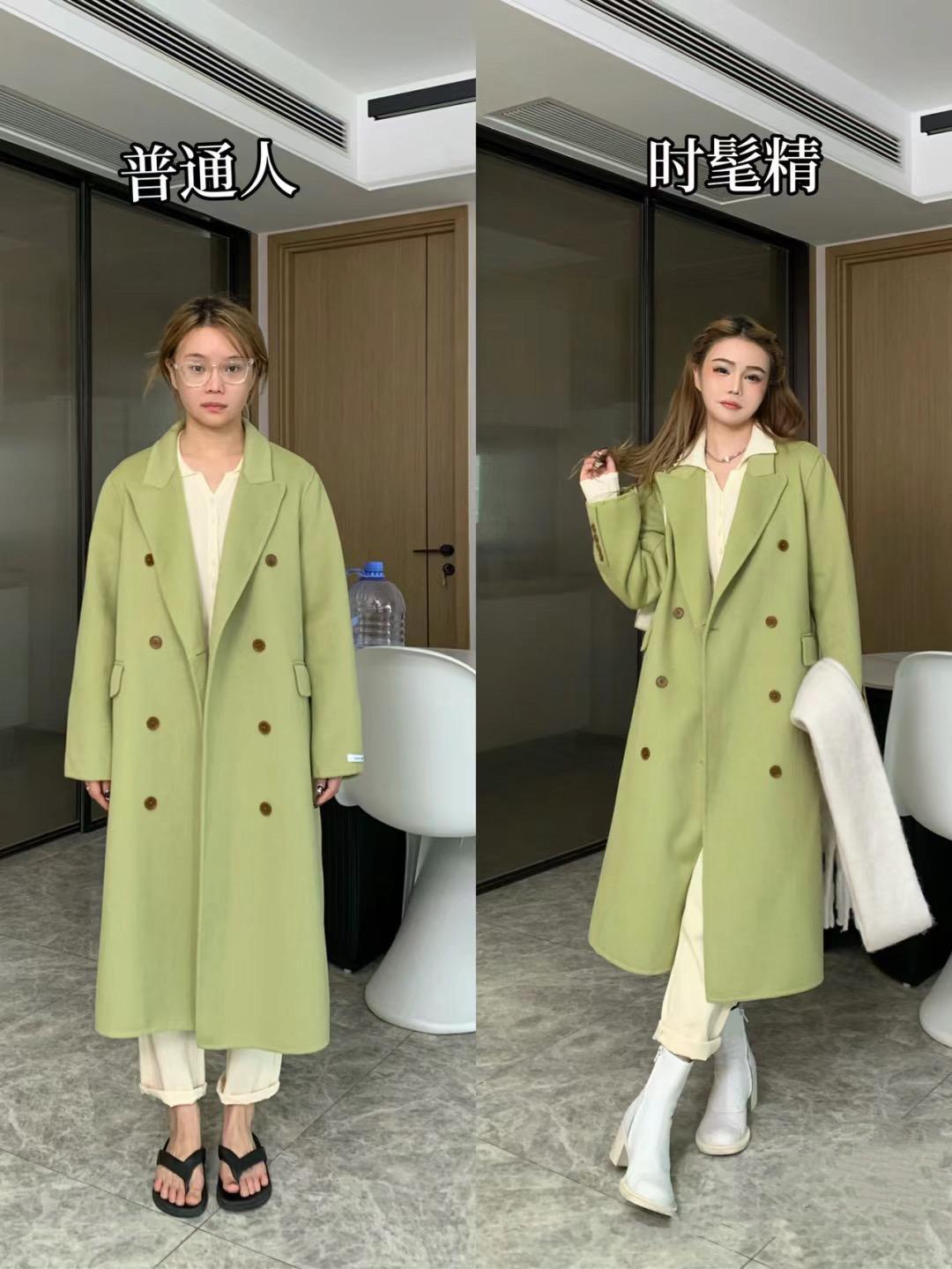 對於一下這兩件綠色大衣的穿着方式,是不是一個很路人,一個又很時髦呢?明明是同樣的衣服,只是稍微轉變了搭配思路,就表現出不一樣的時尚氛圍。