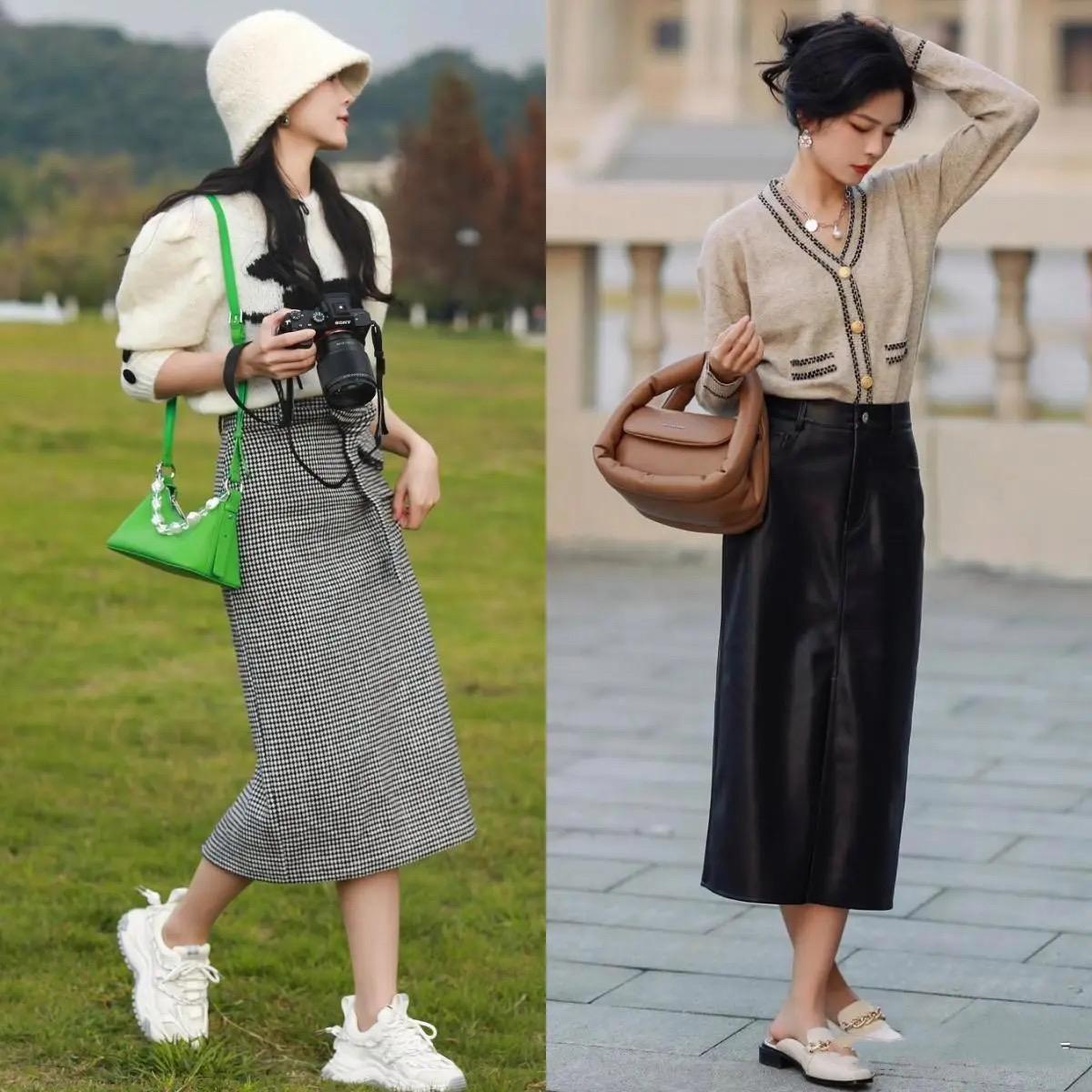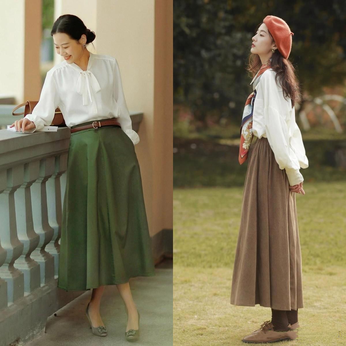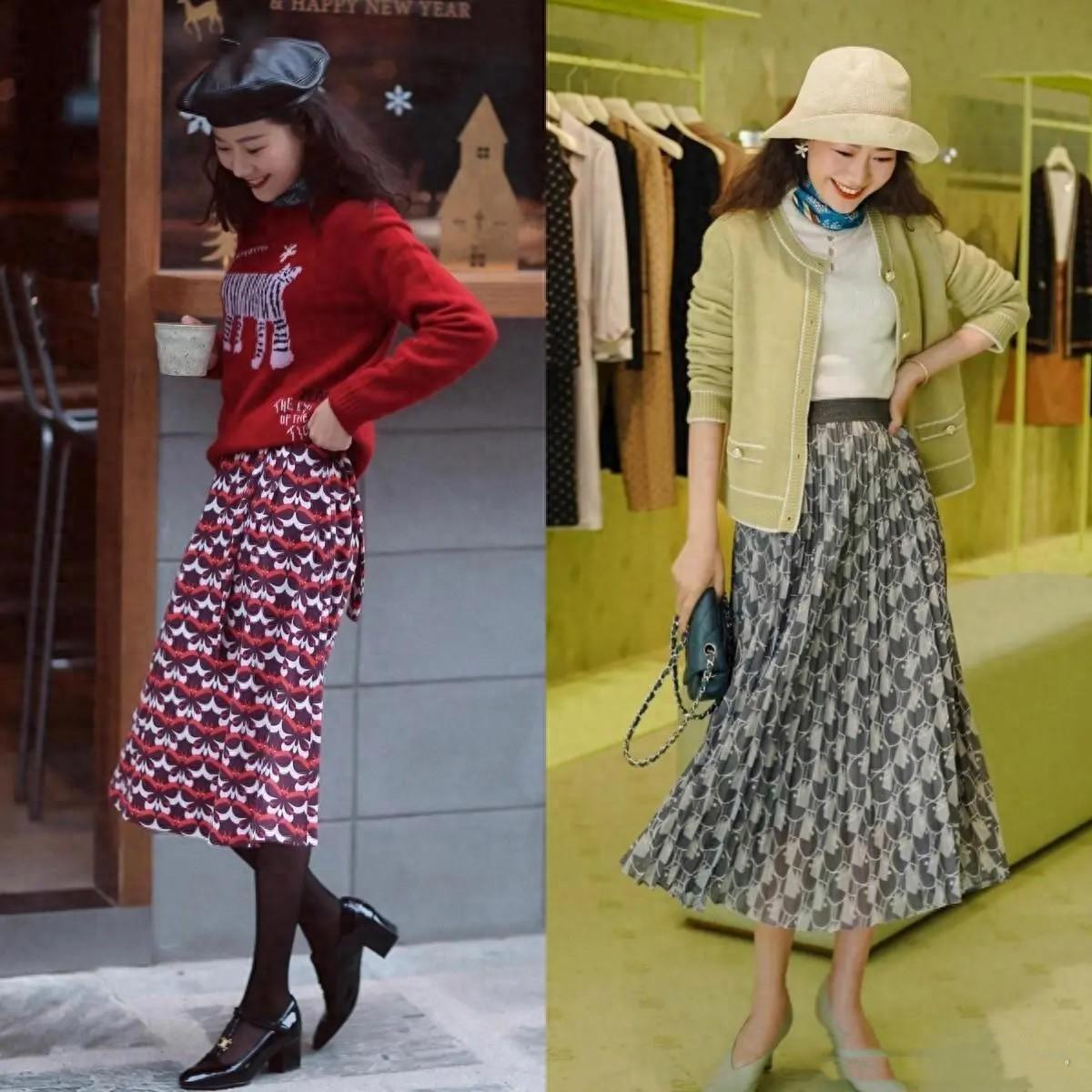 半身長裙搭配不同的面料、色彩、款式、印花、圖案、細節,就可以塑造出不一樣的時尚風格。初春季節溫度比較低,柔軟的針織、保暖的毛呢、柔軟的棉麻都是不錯的材質選擇。