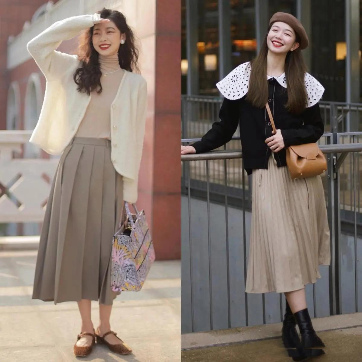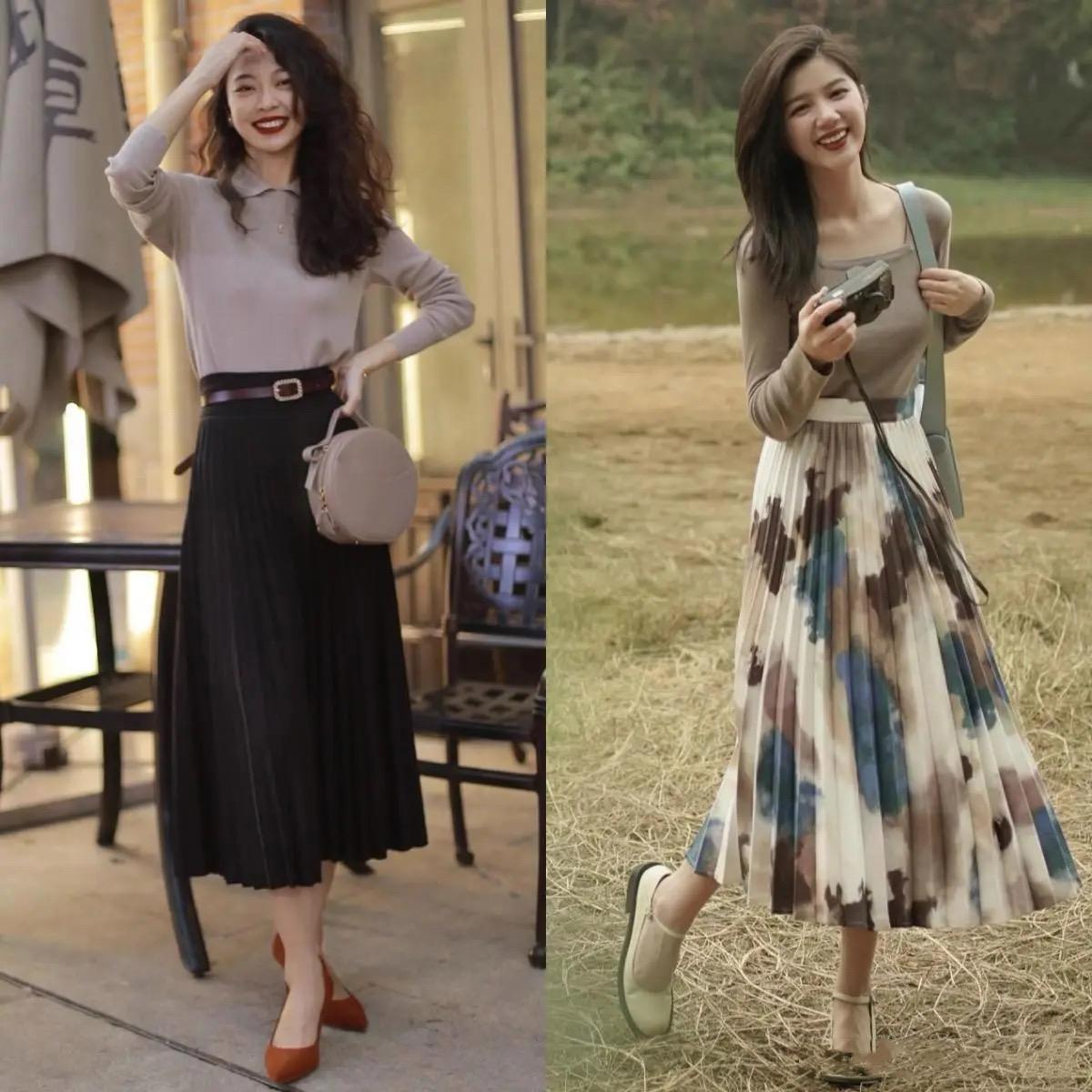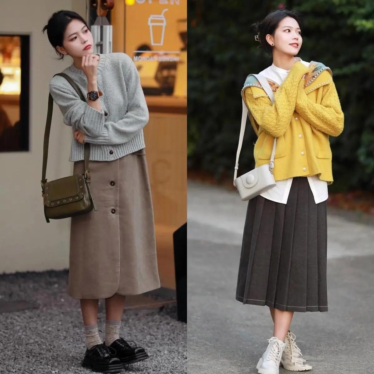 半身長裙搭配不同的面料、色彩、款式、印花、圖案、細節,就可以塑造出不一樣的時尚風格。初春季節溫度比較低,柔軟的針織、保暖的毛呢、柔軟的棉麻都是不錯的材質選擇。