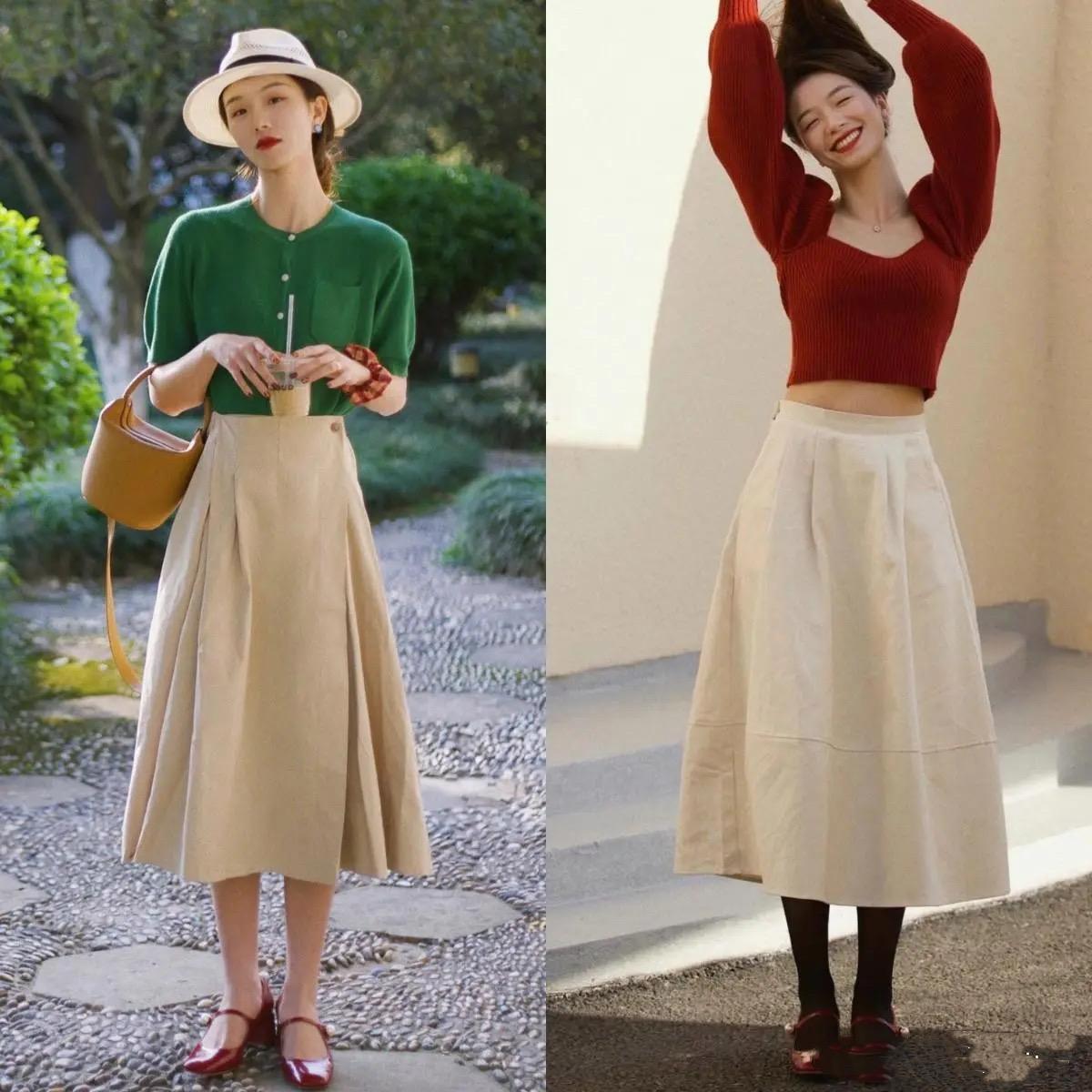 棉麻質感的半身裙,更適合演繹復古文藝風。棉麻半身裙,是一種自帶文藝範的裙裝。尤其是搭配比較柔和的米白色、杏色、淺咖色、淺駝色,既大方又文藝。