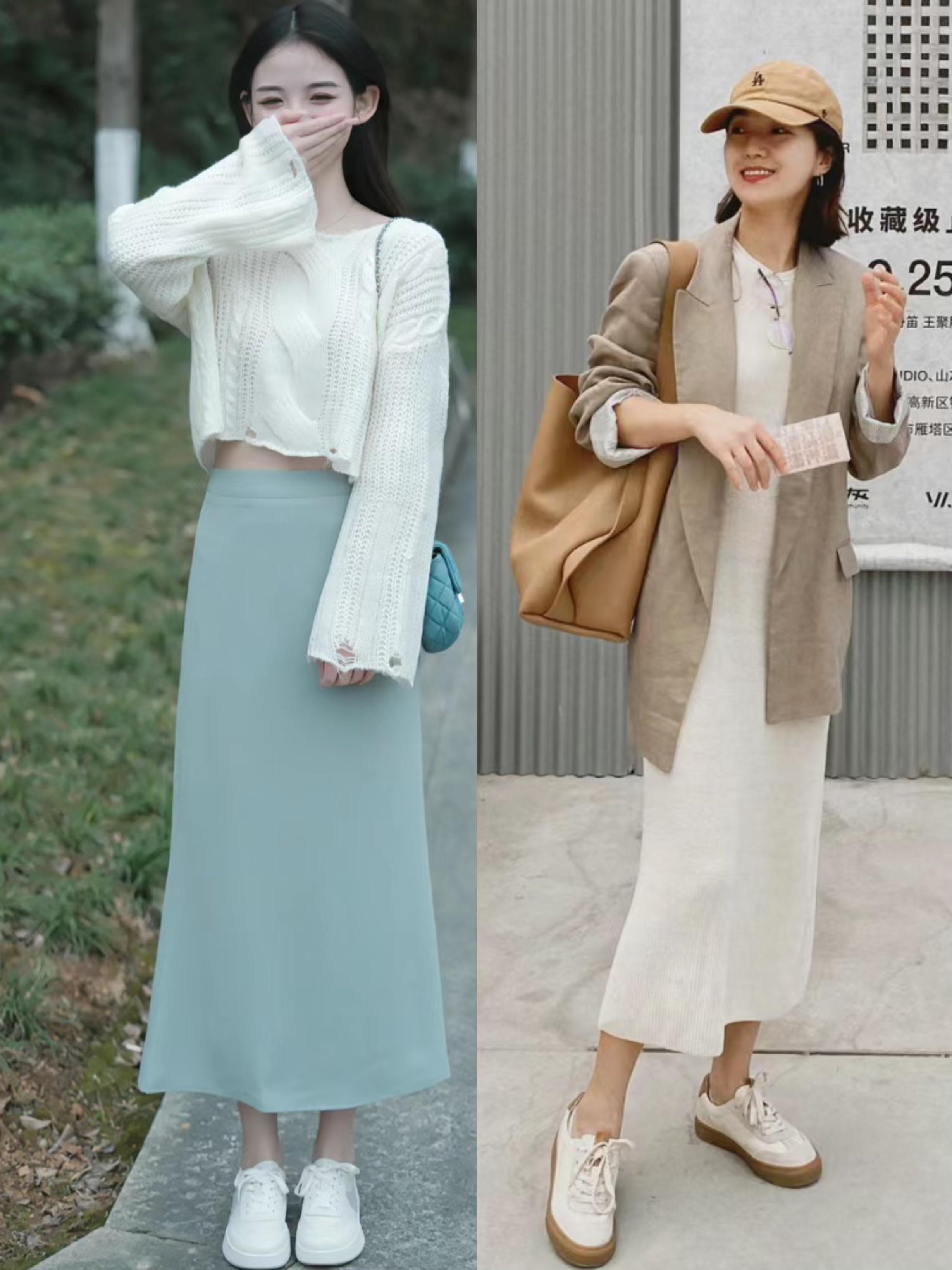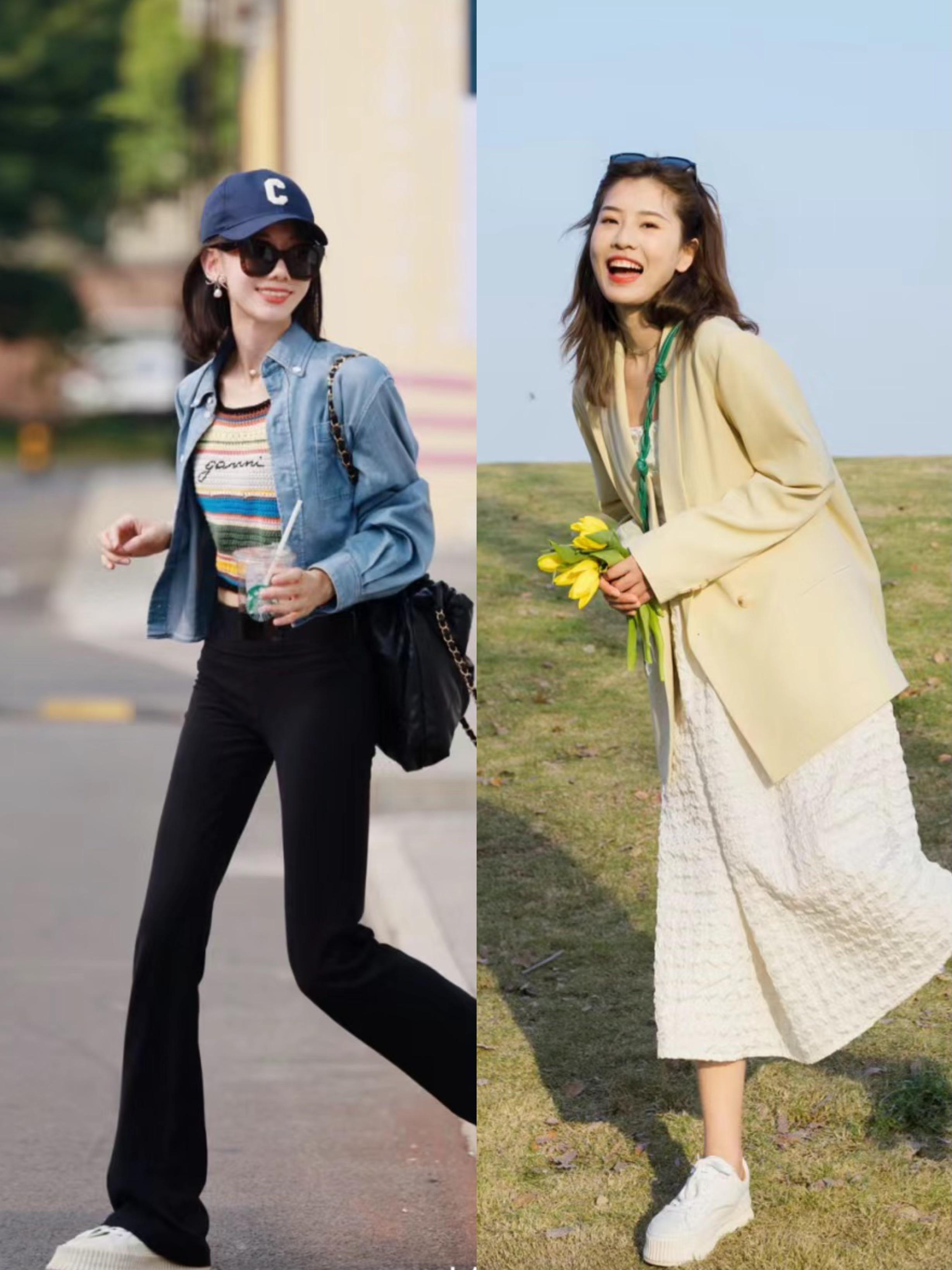 高腰的小黑褲,厚底的小白鞋,完美避免了褲筒的邋遢感。春天裏的穿搭,我們也可以多選擇基礎款。基礎款厚底小白鞋,配上經典小黑褲,更容易塑造出大長腿的既視感。