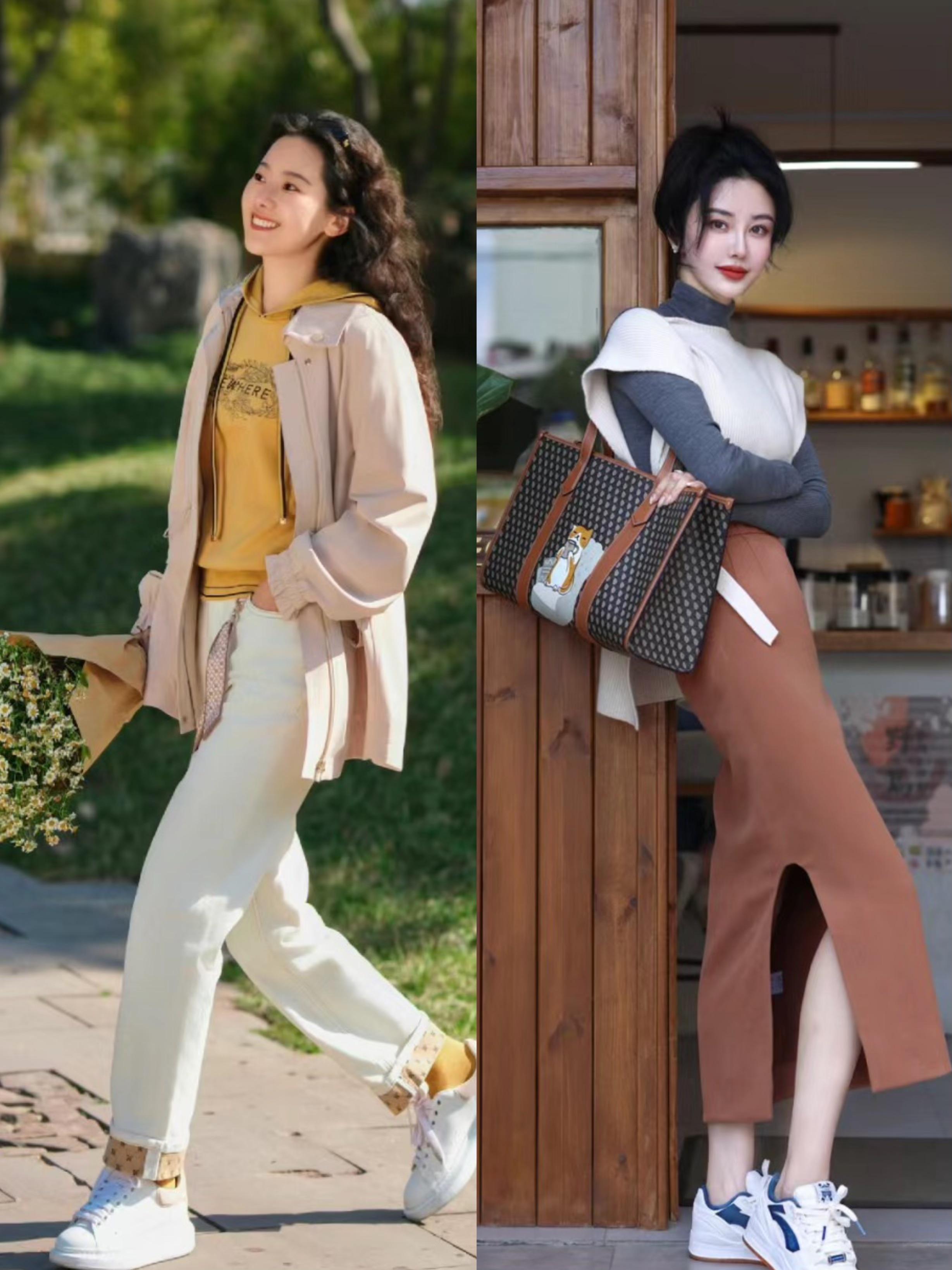 如果是對時尚度的追求比較高,我們可以嘗試選擇撞色或者印花的小白鞋。比如藍白撞色的小白鞋,就非常的清爽高級,早春季節穿起來也有一種時髦顯高的效果。
