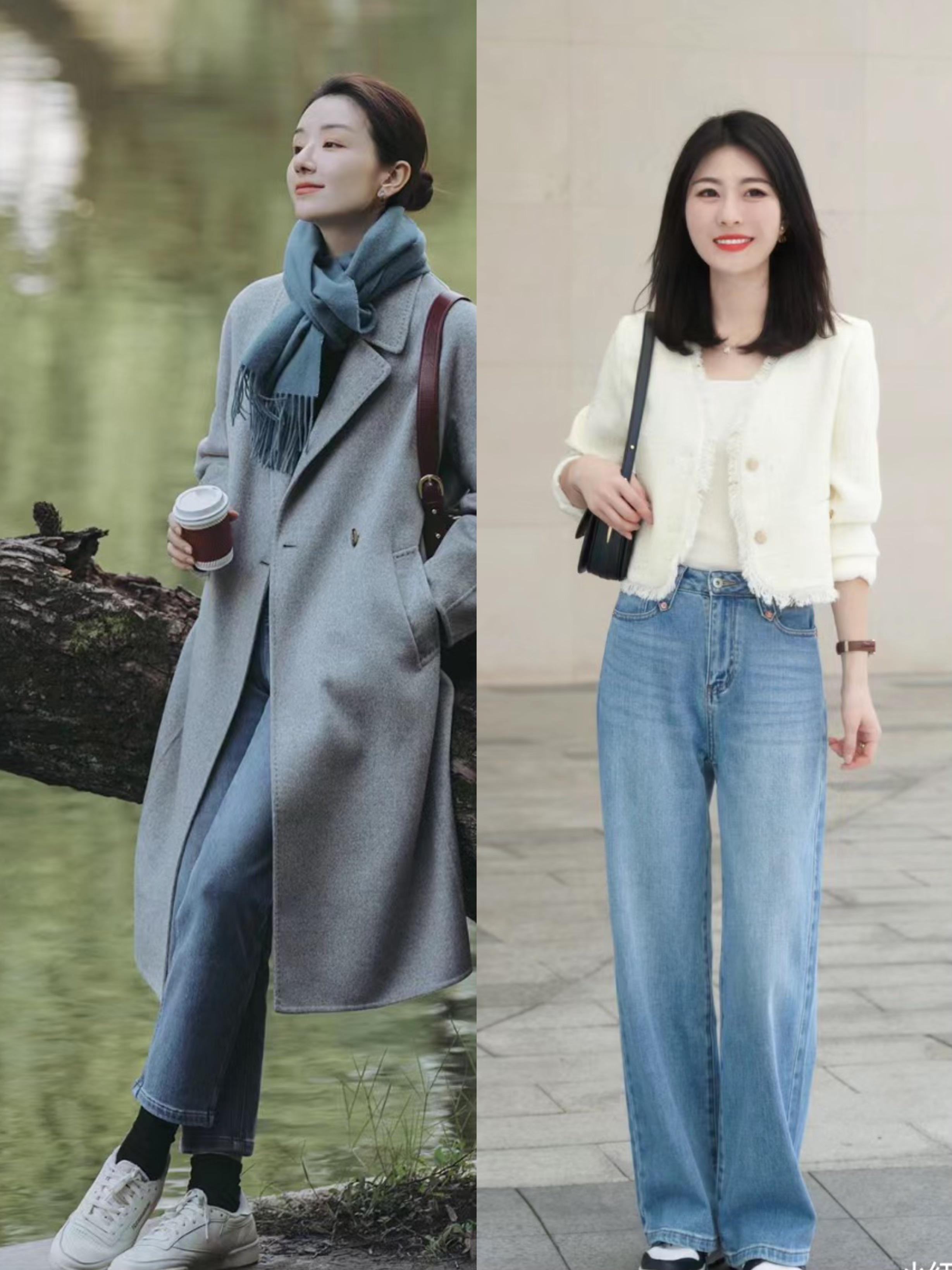 一條稍微修身的直筒牛仔褲,穿起來剛好可以露出腳踝處的線條,有一種更加輕盈顯高的效果。面料挺闊的直筒牛仔褲,搭配厚底的小白鞋,也是專爲小個子女生定製的組合。