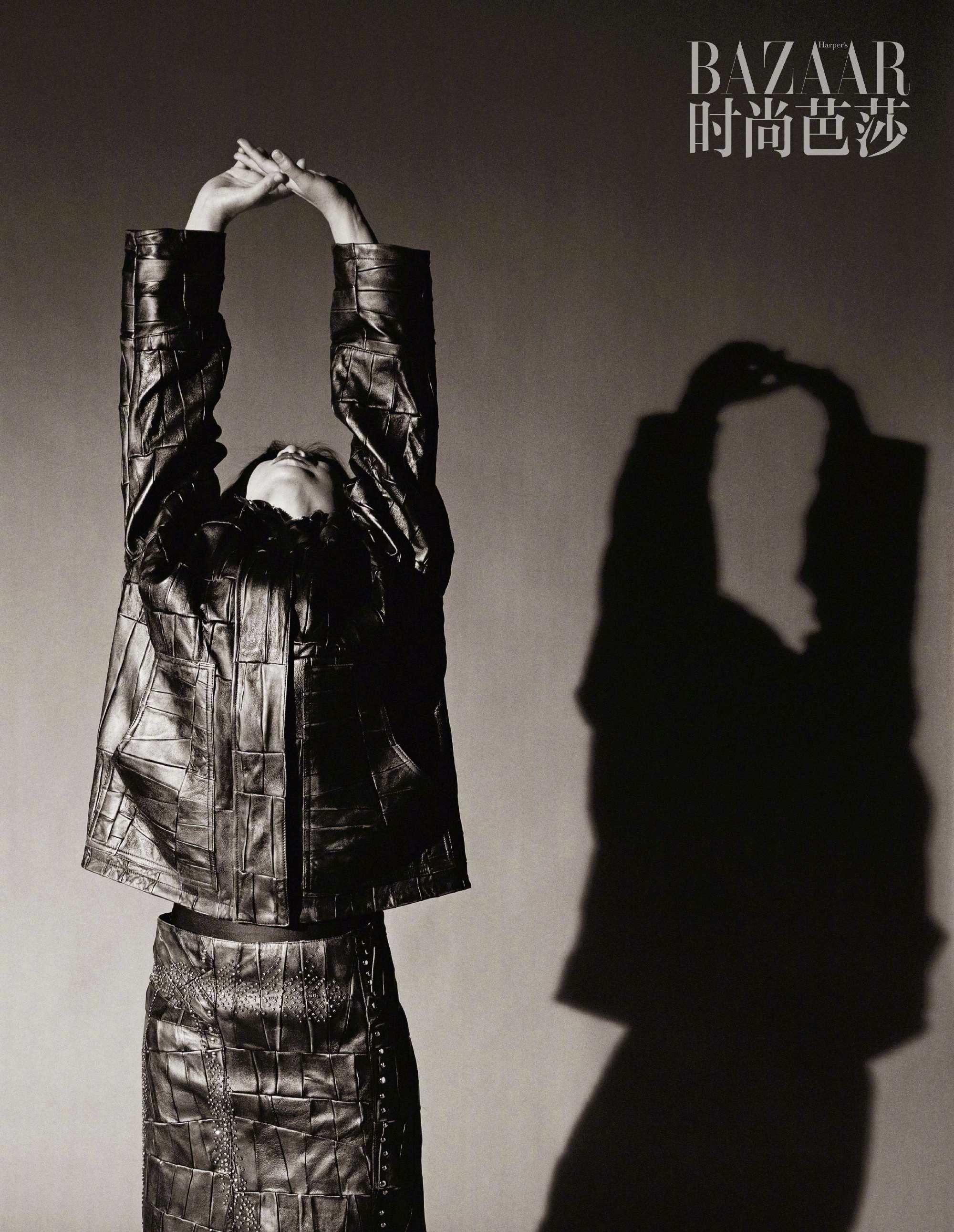 賈玲穿鱷魚紋皮衣套裝,這種帶有紋理感的服裝,配上皮革質地,將帥酷張揚完美演繹,齊肩的鎖骨發、層次清晰,率性瀟灑。