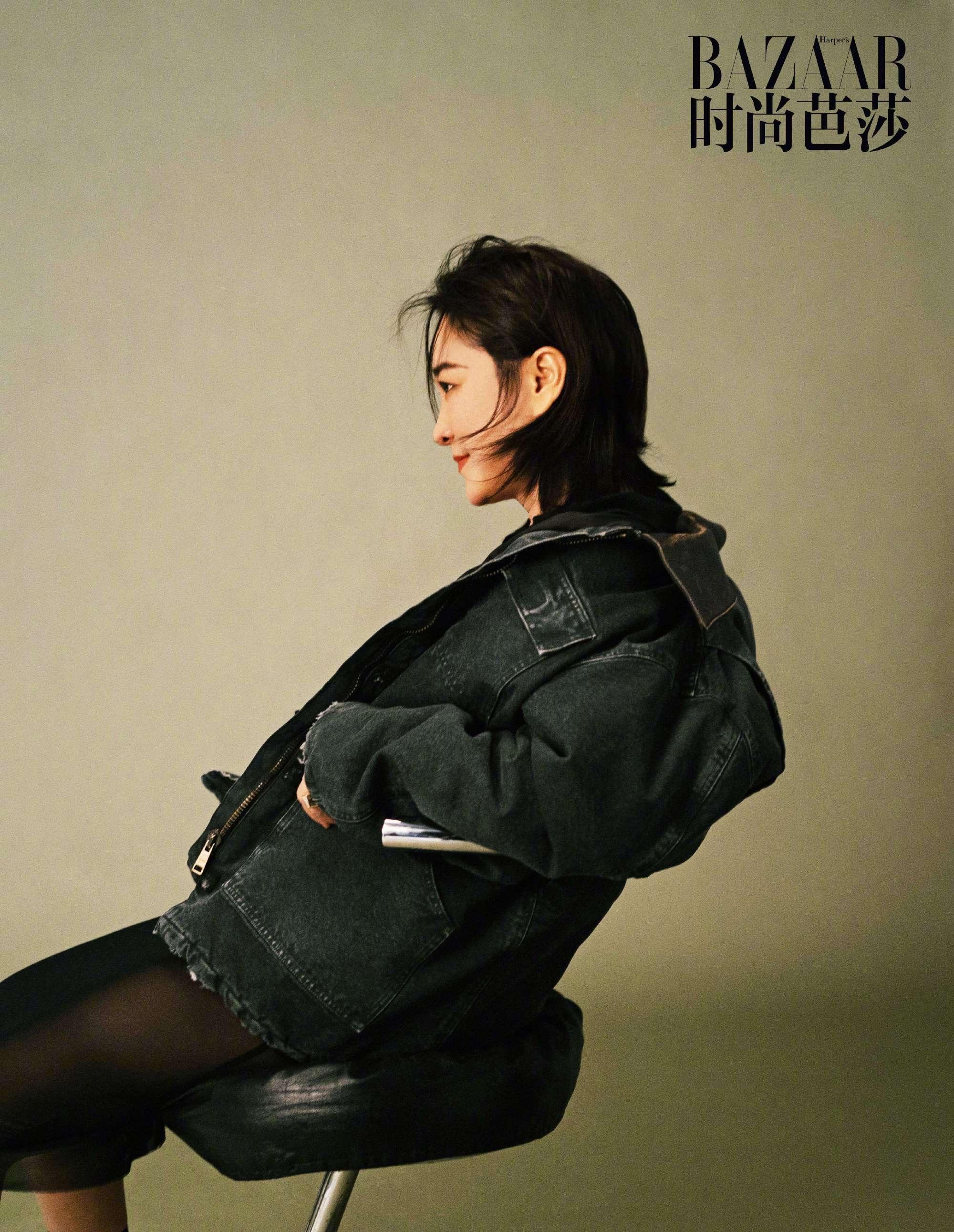 休閒風的穿搭,也可以擁有滿滿的高級範。厚重的牛仔外套,有一種復古做舊的美,與賈玲的層次感短髮,更完美的呼應。
