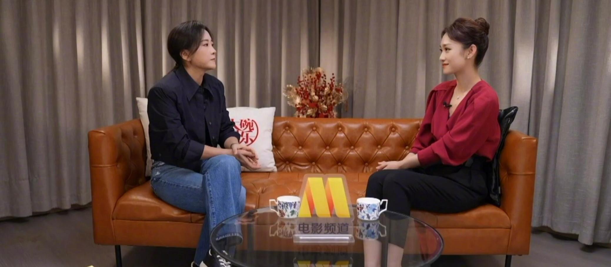 接受採訪時候的賈玲,穿衣搭配也告別了往日的休閒風。利落的小外套、洋溢着青春魅力的牛仔褲,這時候的賈玲、終於起翹起了二郎腿,擺脫了肥胖的標籤。