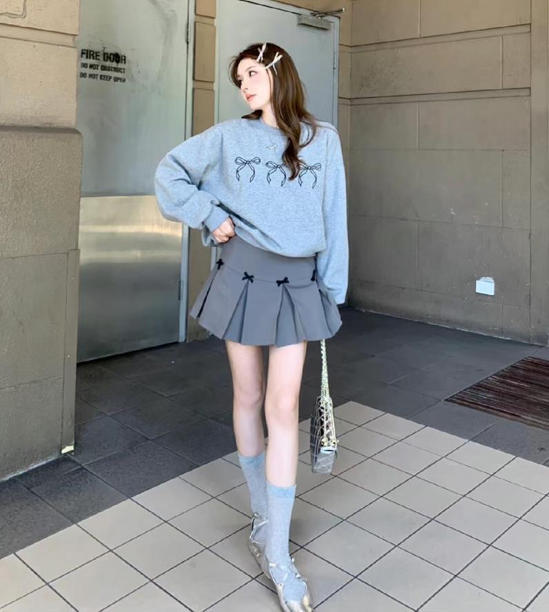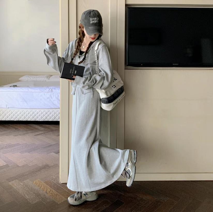 灰色衛衣套裝裙,裙子比較長,所以個子太矮小的姐妹就不要入手啦,160的個子就可以放心穿。