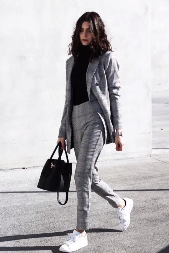 灰色西裝套裝,這麼一套自帶氣場,看起來也太絕了,上身內搭進行了疊穿,顯層次又保證溫度。腳下的鞋子,與內搭色彩進行了呼應,顯得整個穿搭配色協調很多。