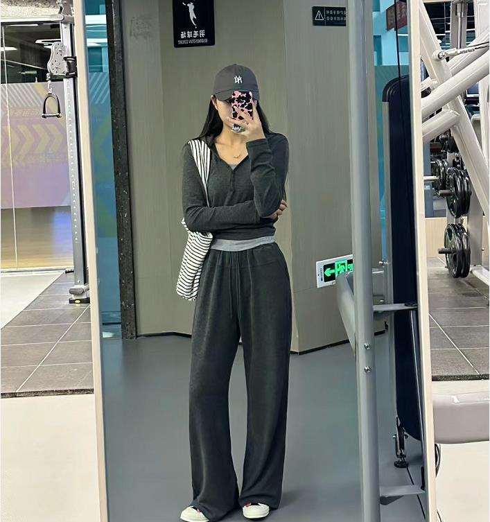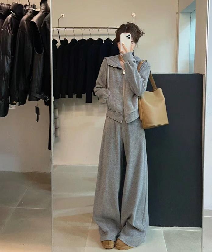 衛衣外套+闊腿拖地褲,經典灰色,真的非常百搭高級,連帽拉鍊外套,很顯比例哦,一套顯瘦好看,鬆弛感十足。