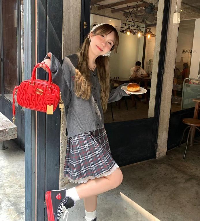 腰細胯寬的姐妹請一定要試試這條半裙,梨形身材穿起來可顯瘦了,上身搭配一件淺灰針織開衫,同色系但有色差的配色。顯得很高級時髦,紅色挎包瞬間就點亮整個造型。
