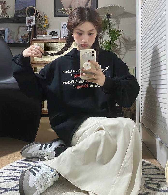 衛衣和半裙也太舒服了,現在這個天氣,衛衣單穿也是沒有問題的,我喜歡稍微大點的衛衣,穿起來會很洋氣。