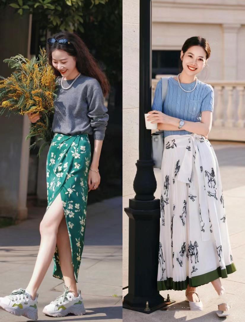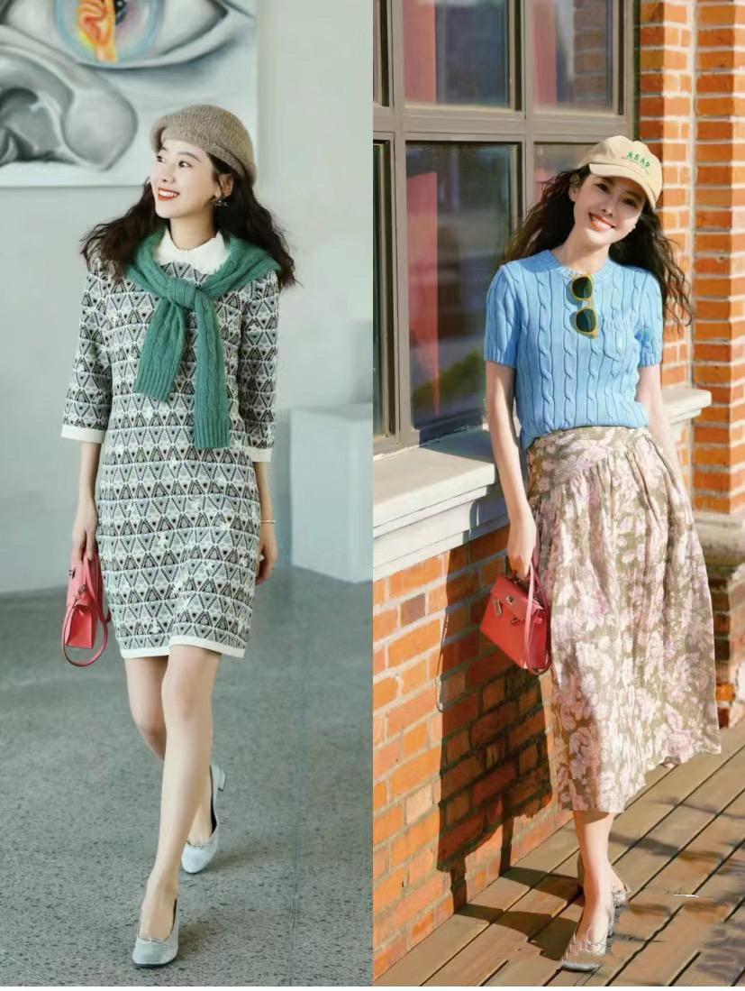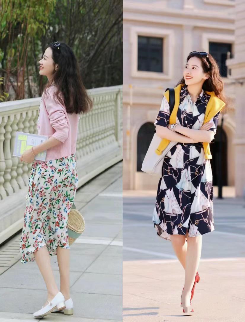 我們也可以用針織開衫來搭配浪漫的碎花裙,針織開衫的色彩最好與碎花半身裙中的某一種顏色呼應。這種細節上的呼應,可以增強整體協調性和舒適度。