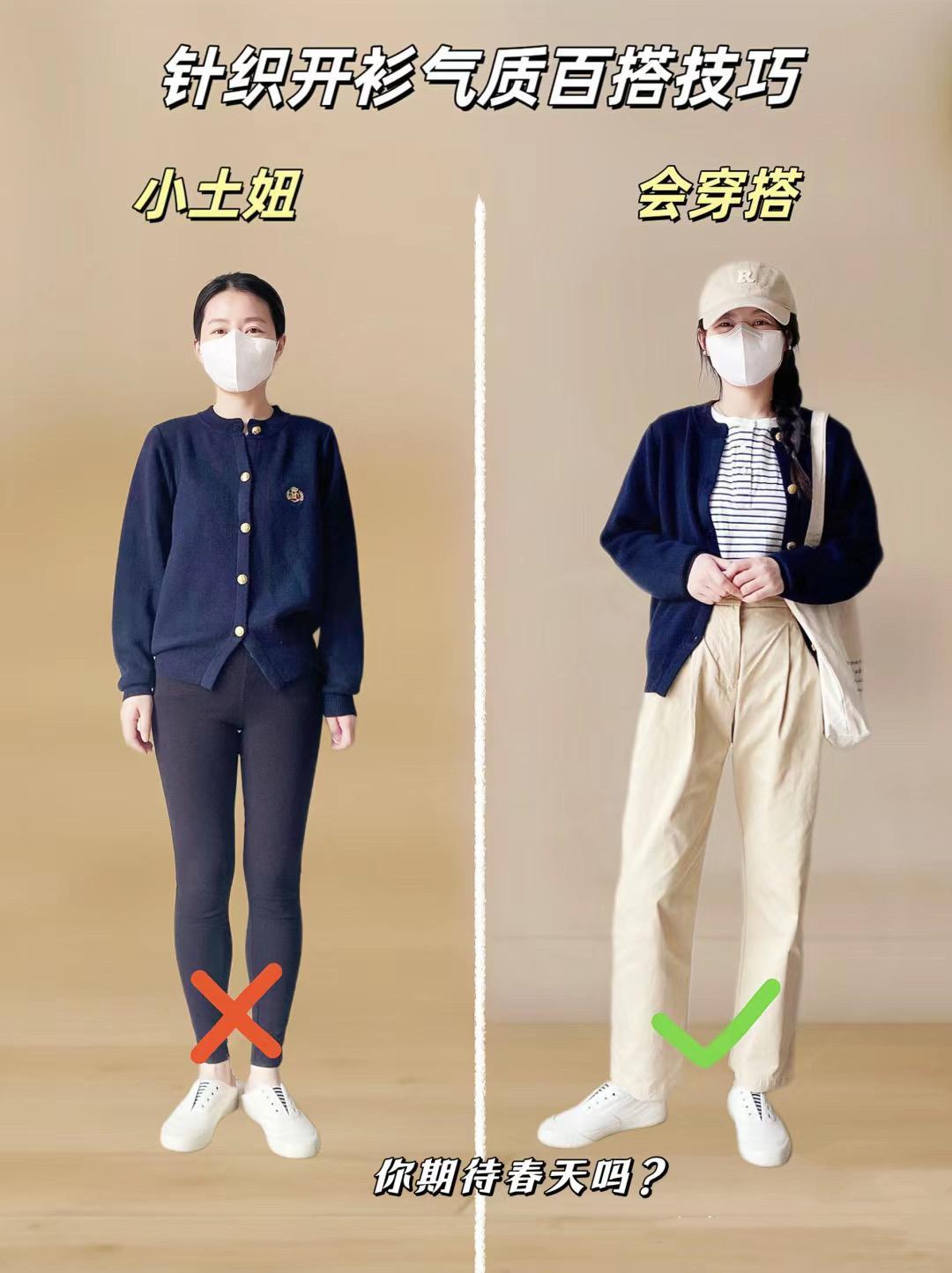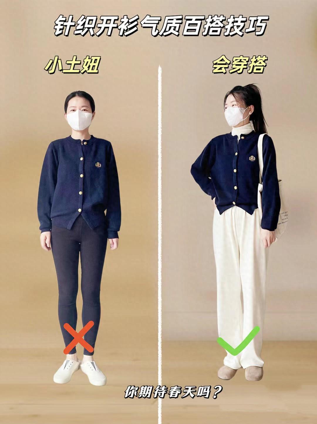 看這位時尚博主的穿搭,明明是同一件針織衫、只是穿了一種穿着方式,就表現出兩種截然不同的效果。
