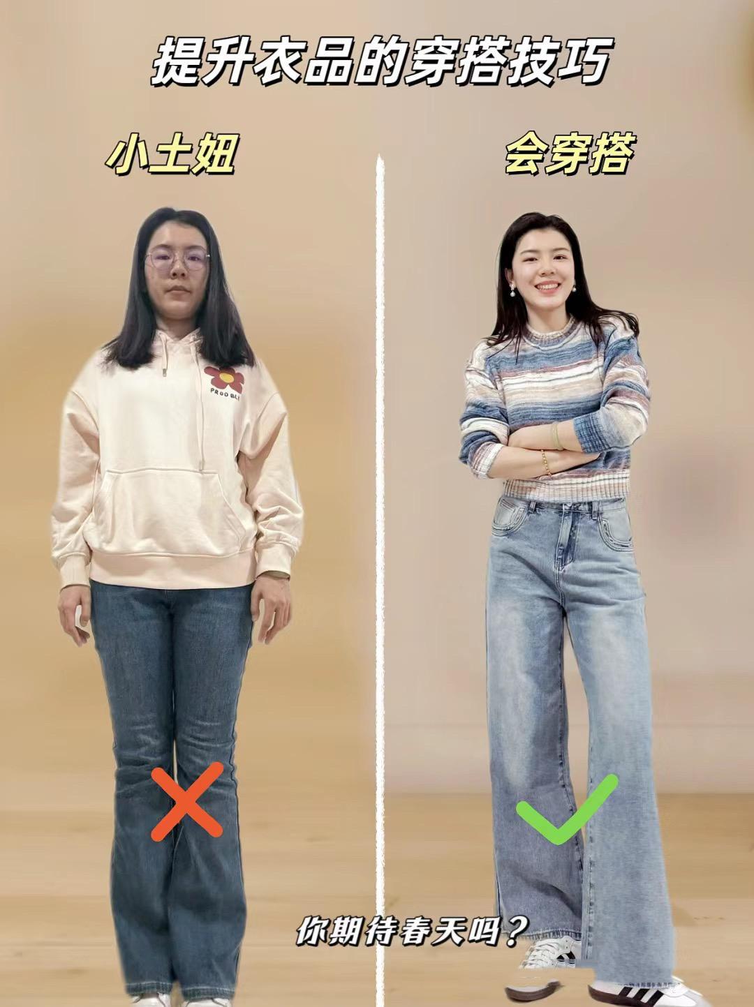 小土妞一般的穿搭,真的是土氣又廉價。學會穿搭後,你的氣質和品味都會得到一定程度的提升。我們可以用彩虹元素的針織衫,來搭配藍色直筒牛仔褲。
